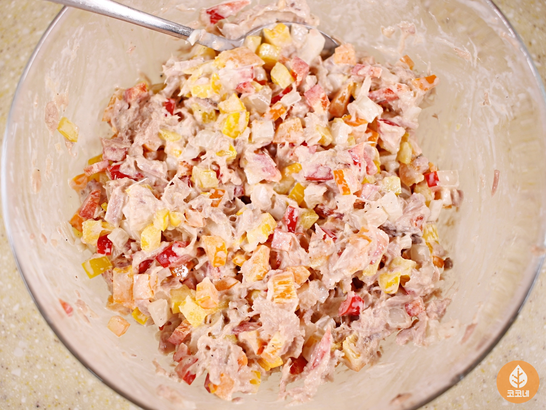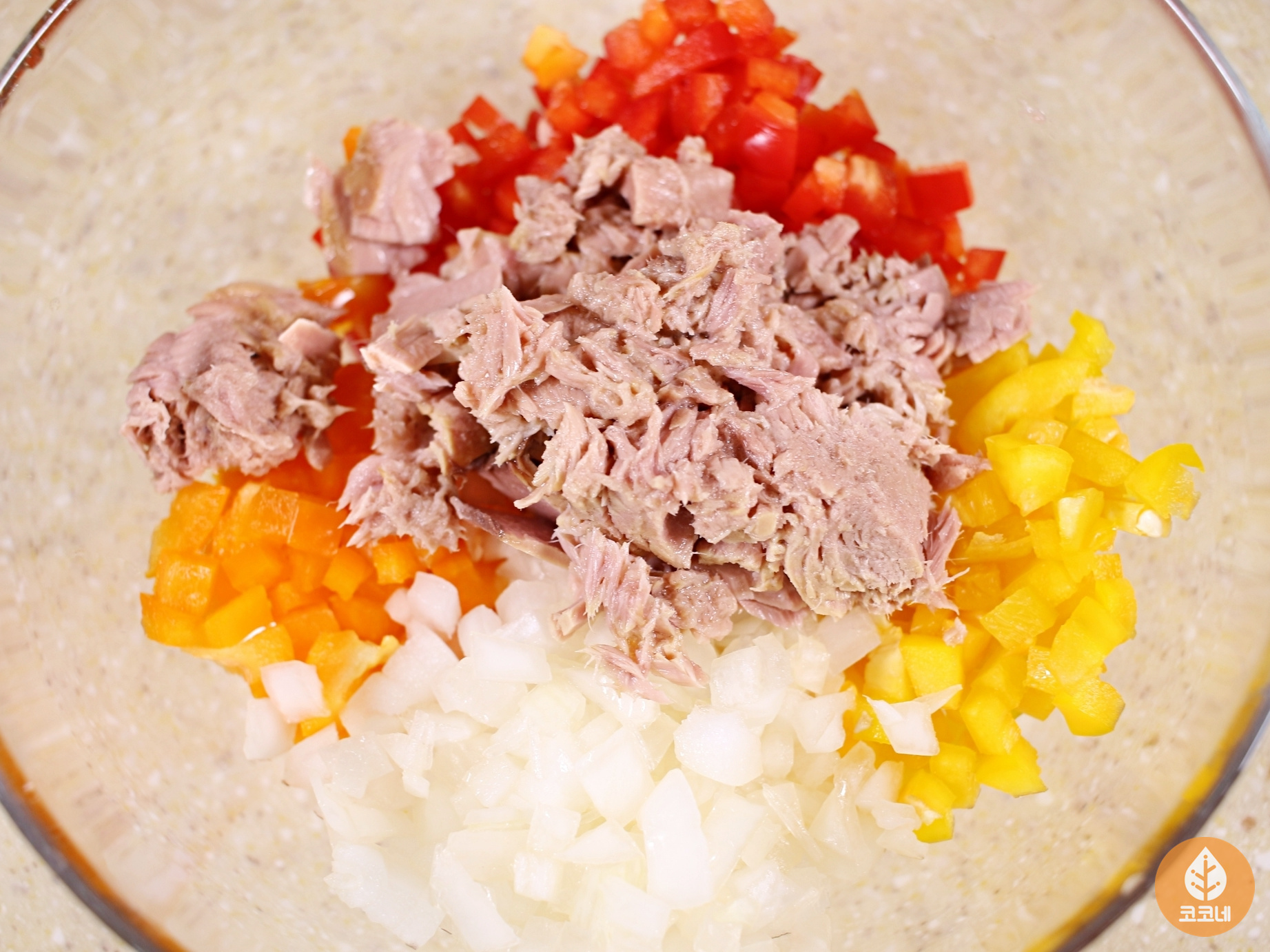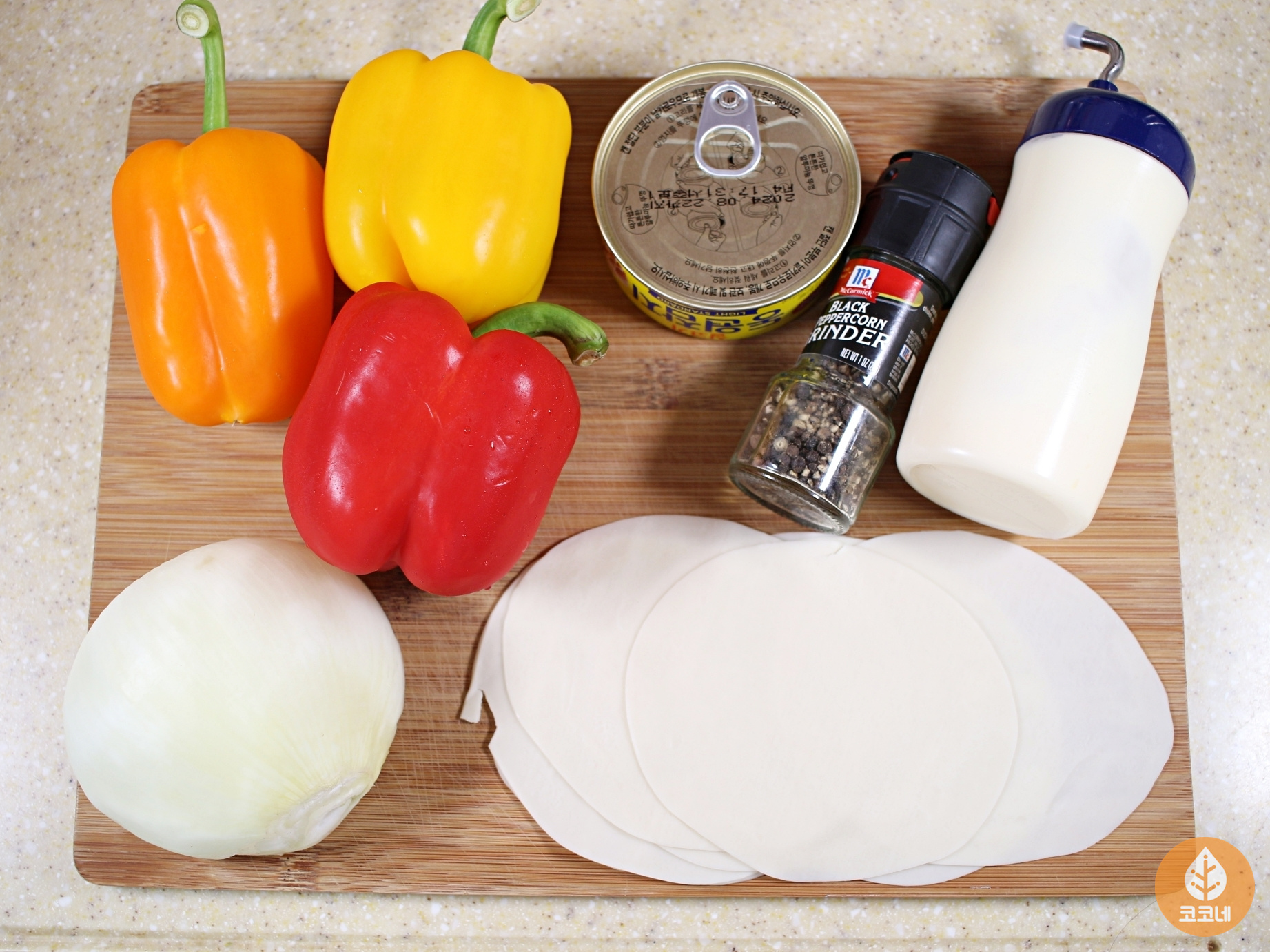 재료는 파프리카, 양파, 참치, 마요네즈, 후추