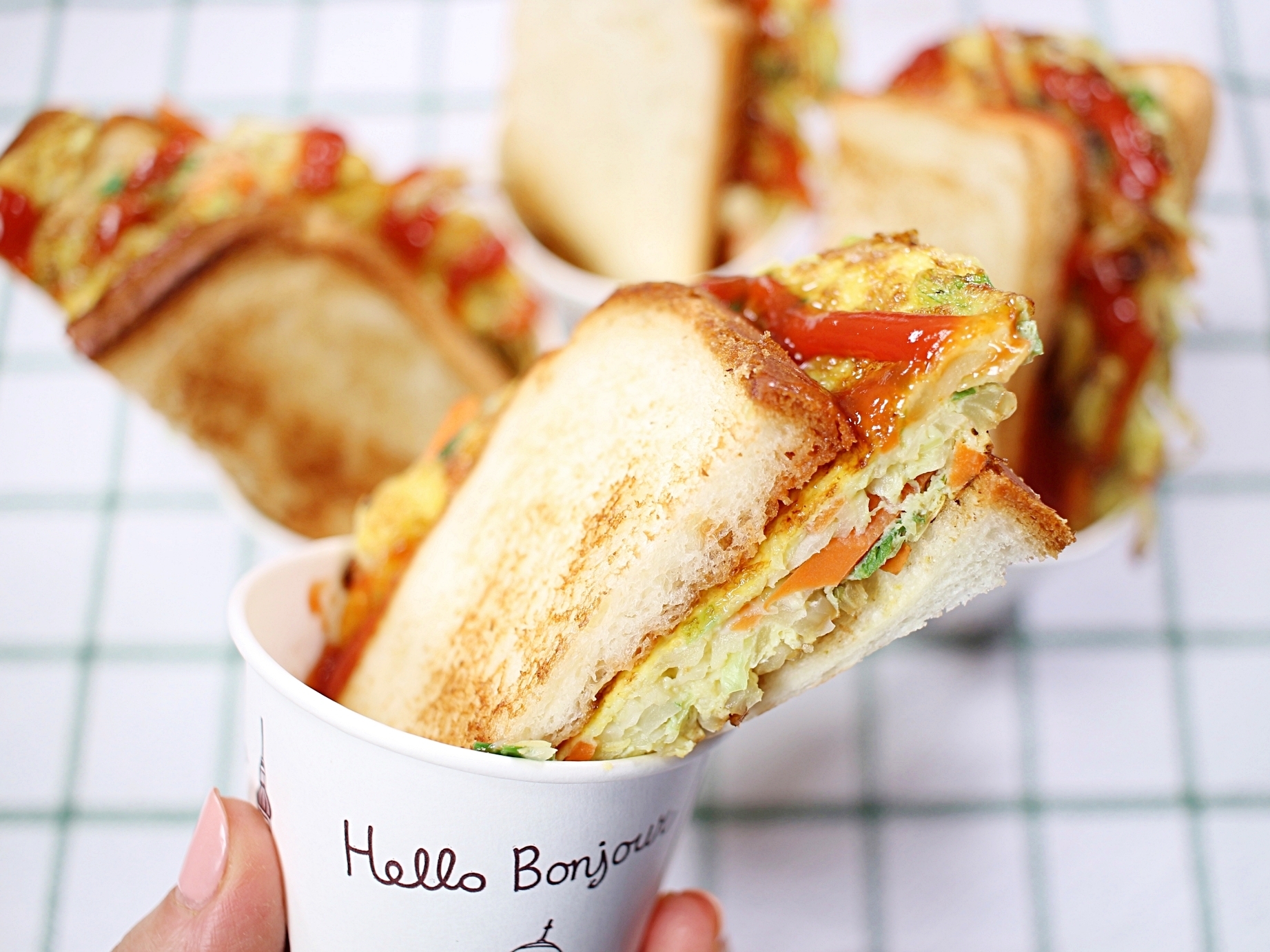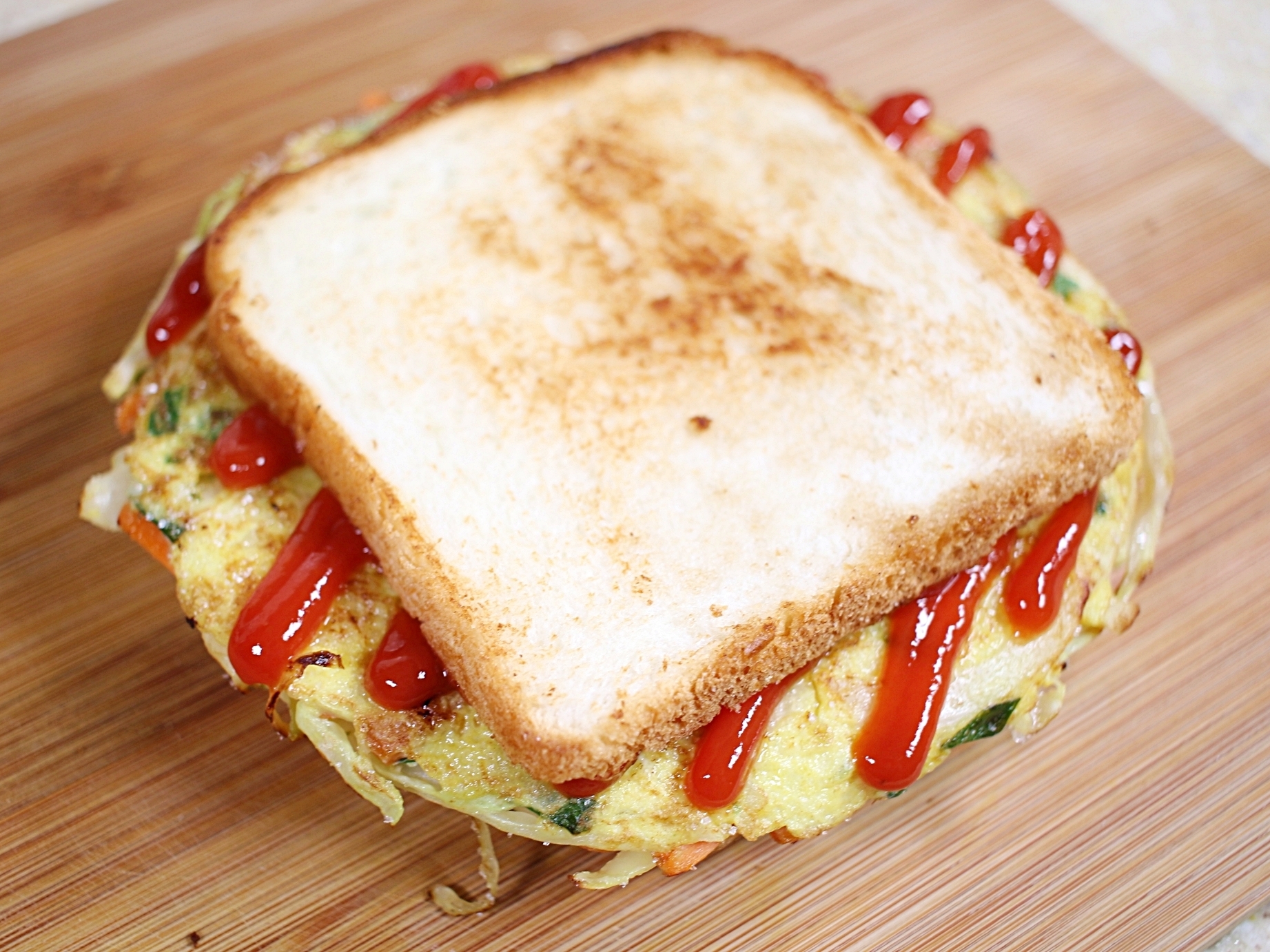 노릇노릇하게 구운 식빵 사이로 촉촉한 계란 지단,