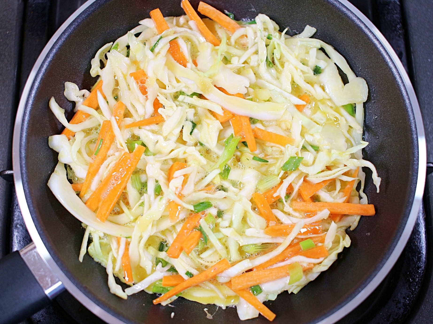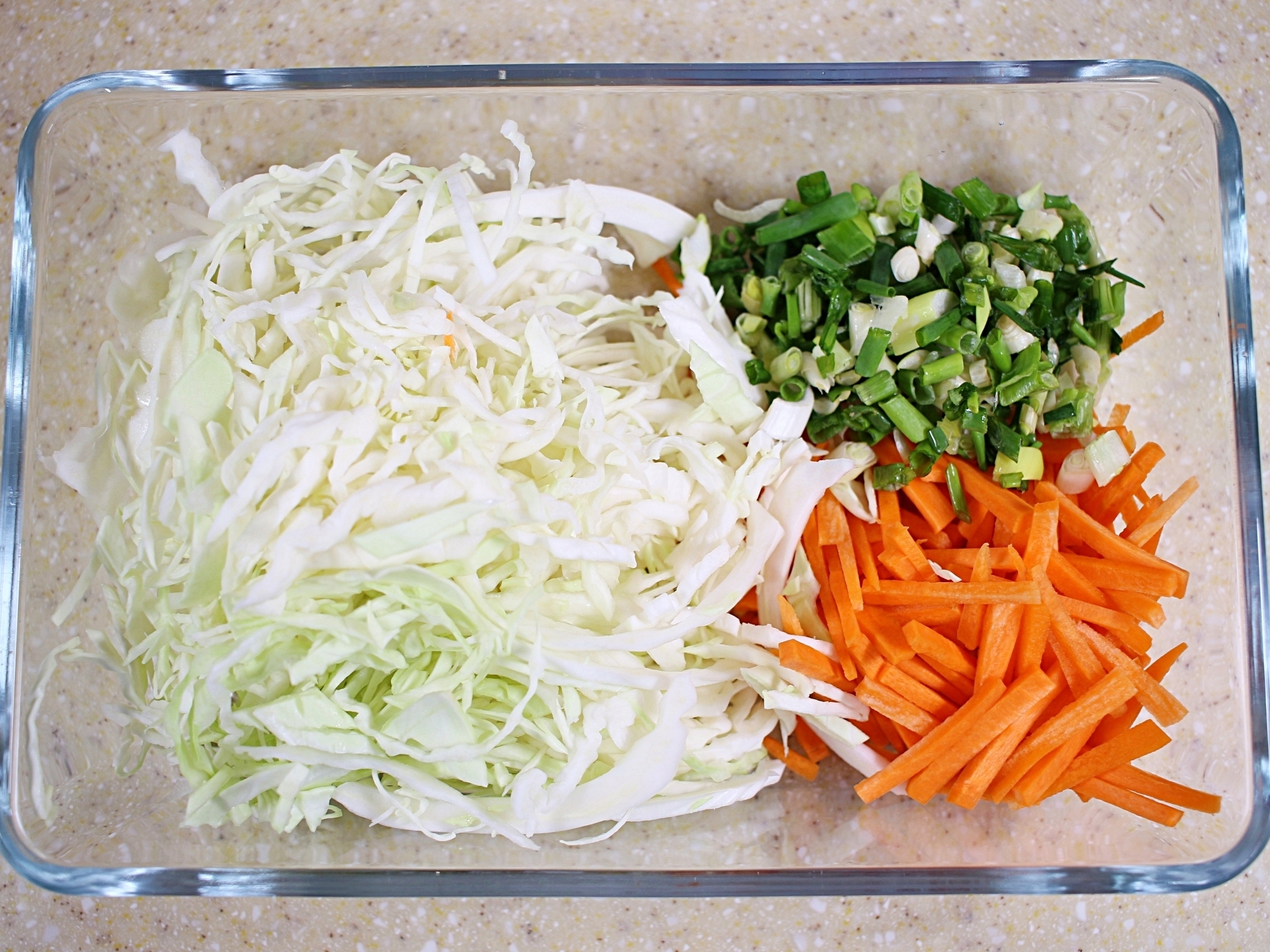 양배추랑 당근은 얇게 채 썰고, 쪽파는 송송 다져주세요.