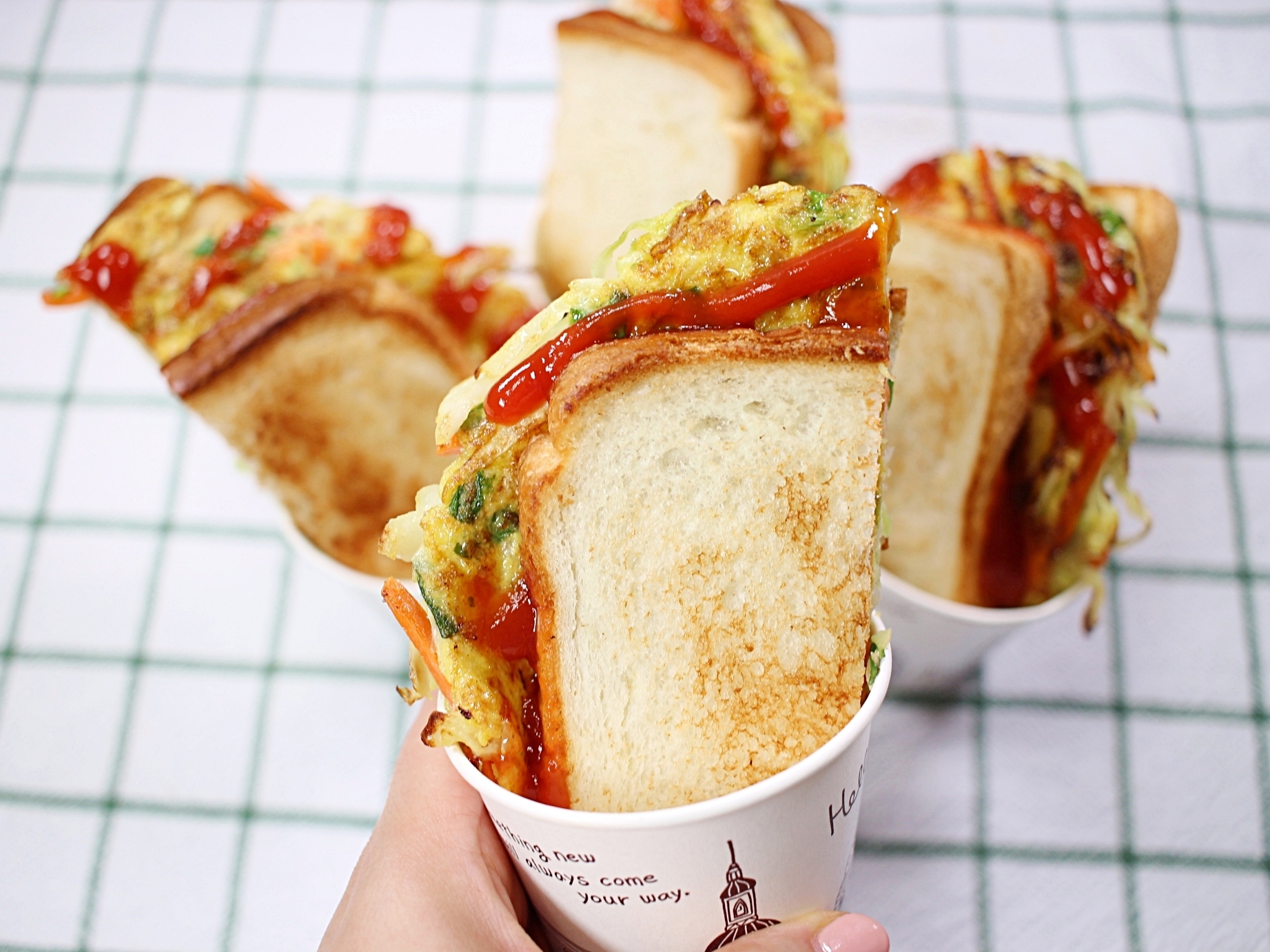종이컵에 담으면 길거리토스트 그 자체에요.