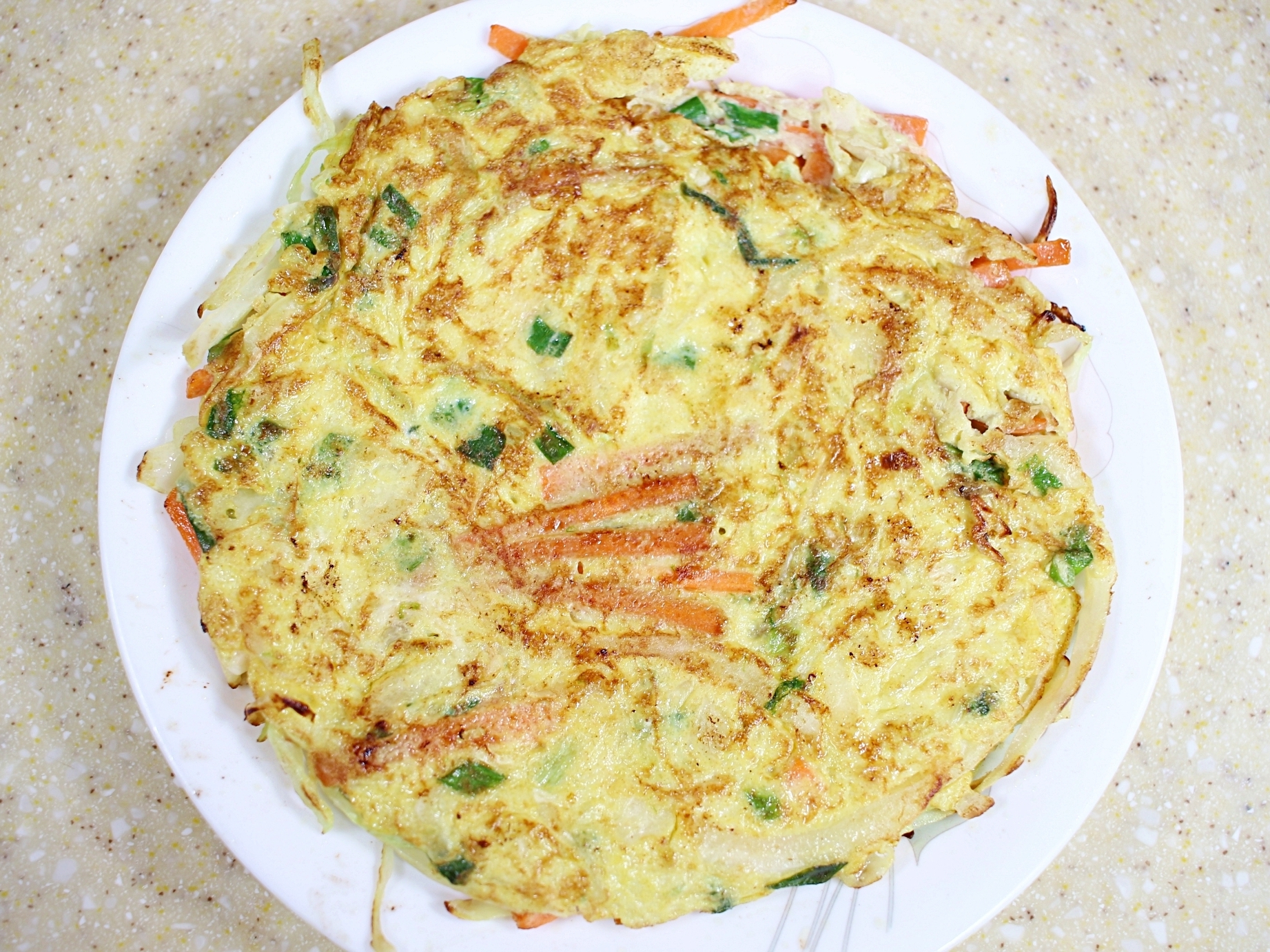 채소 듬뿍 넣은 달걀지단을 부쳐요.