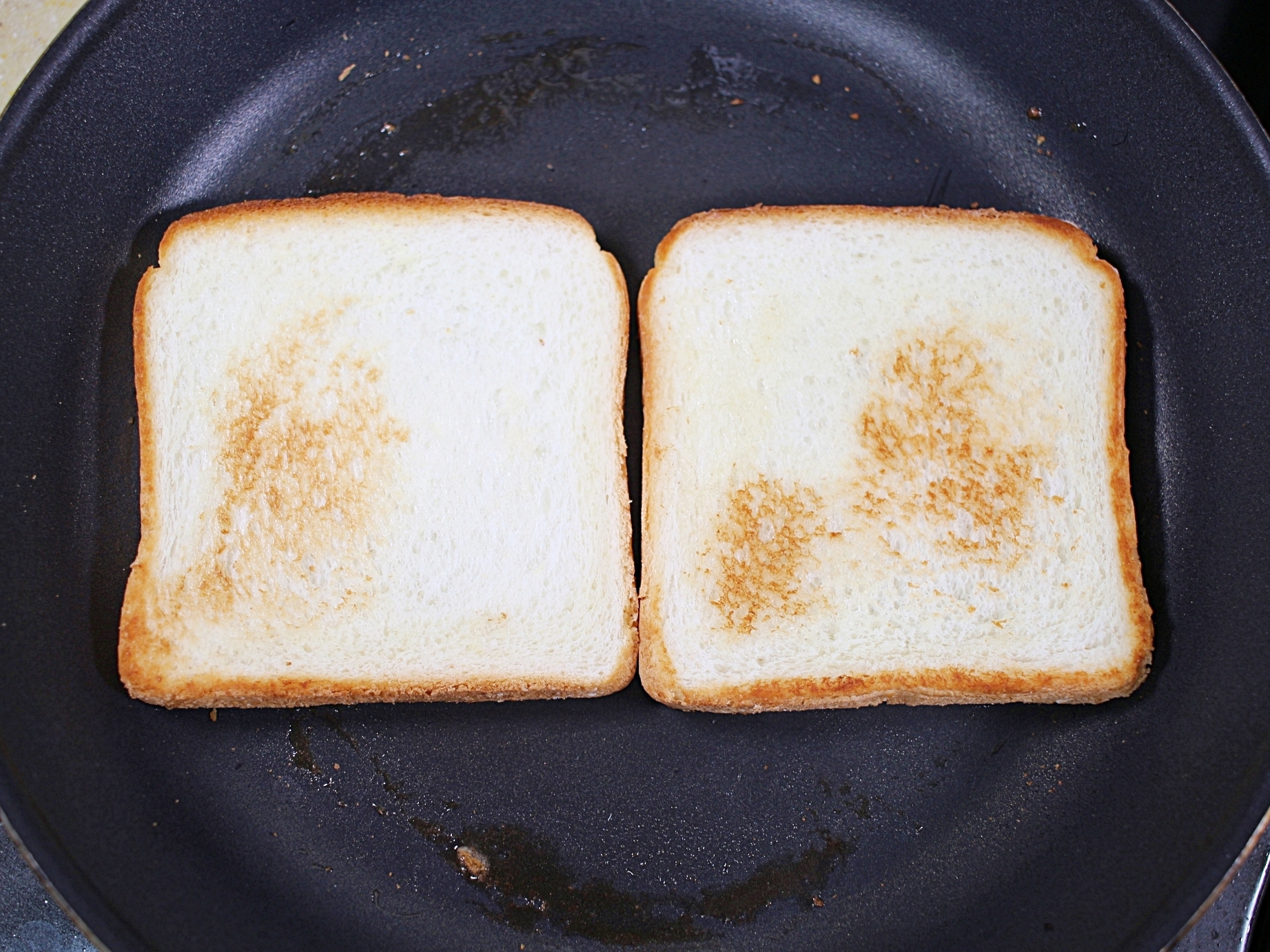 후라이팬에 버터를 녹인 다음 식빵을 노릇노릇하게 구워요.