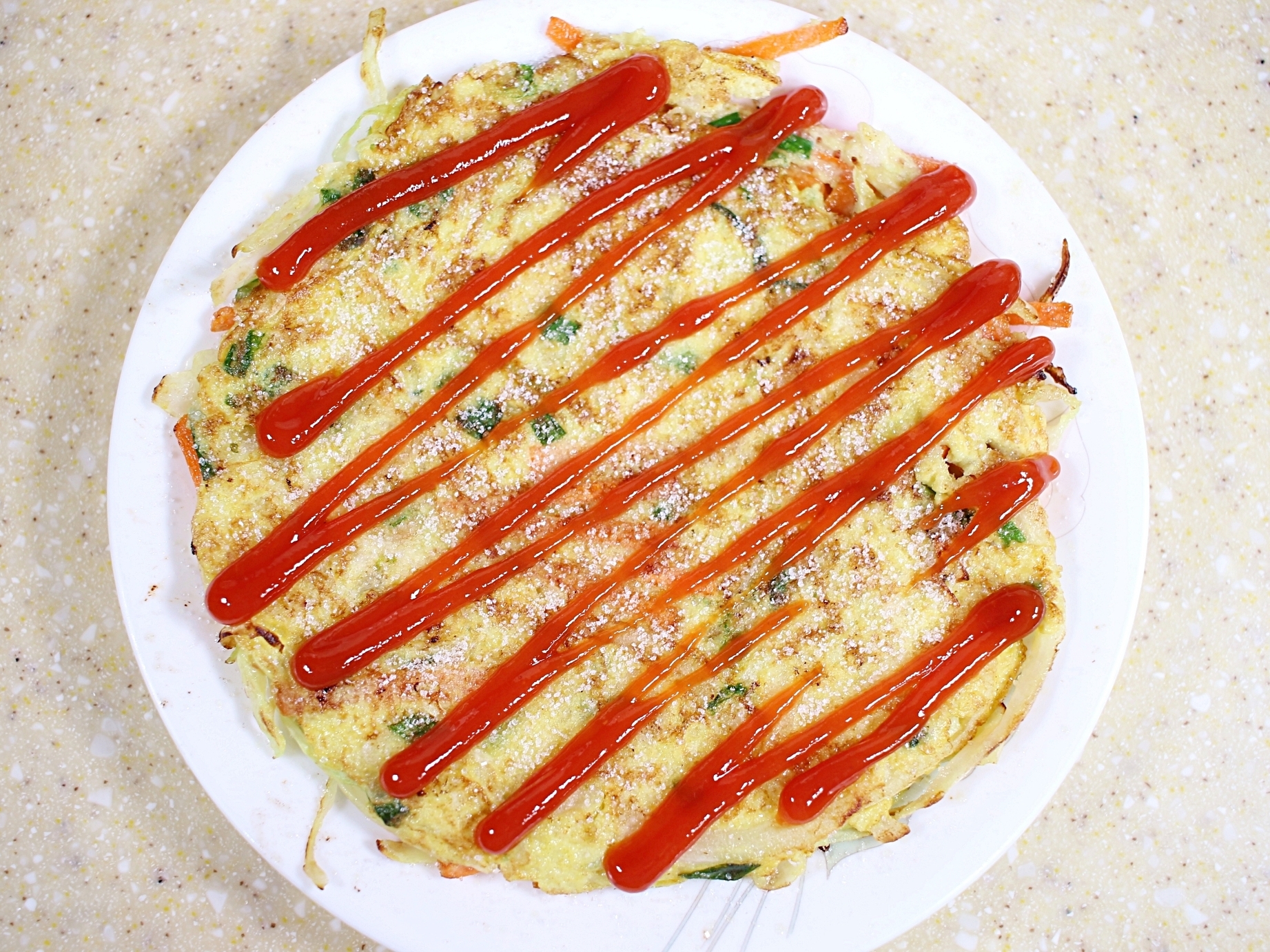 달걀지단 위에 설탕 솔솔 뿌리고,