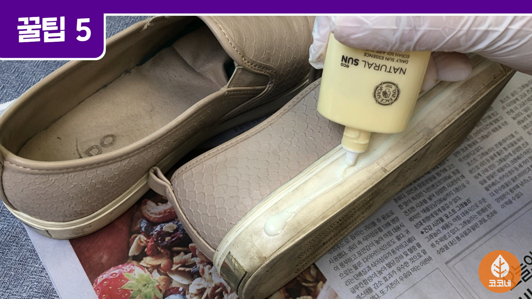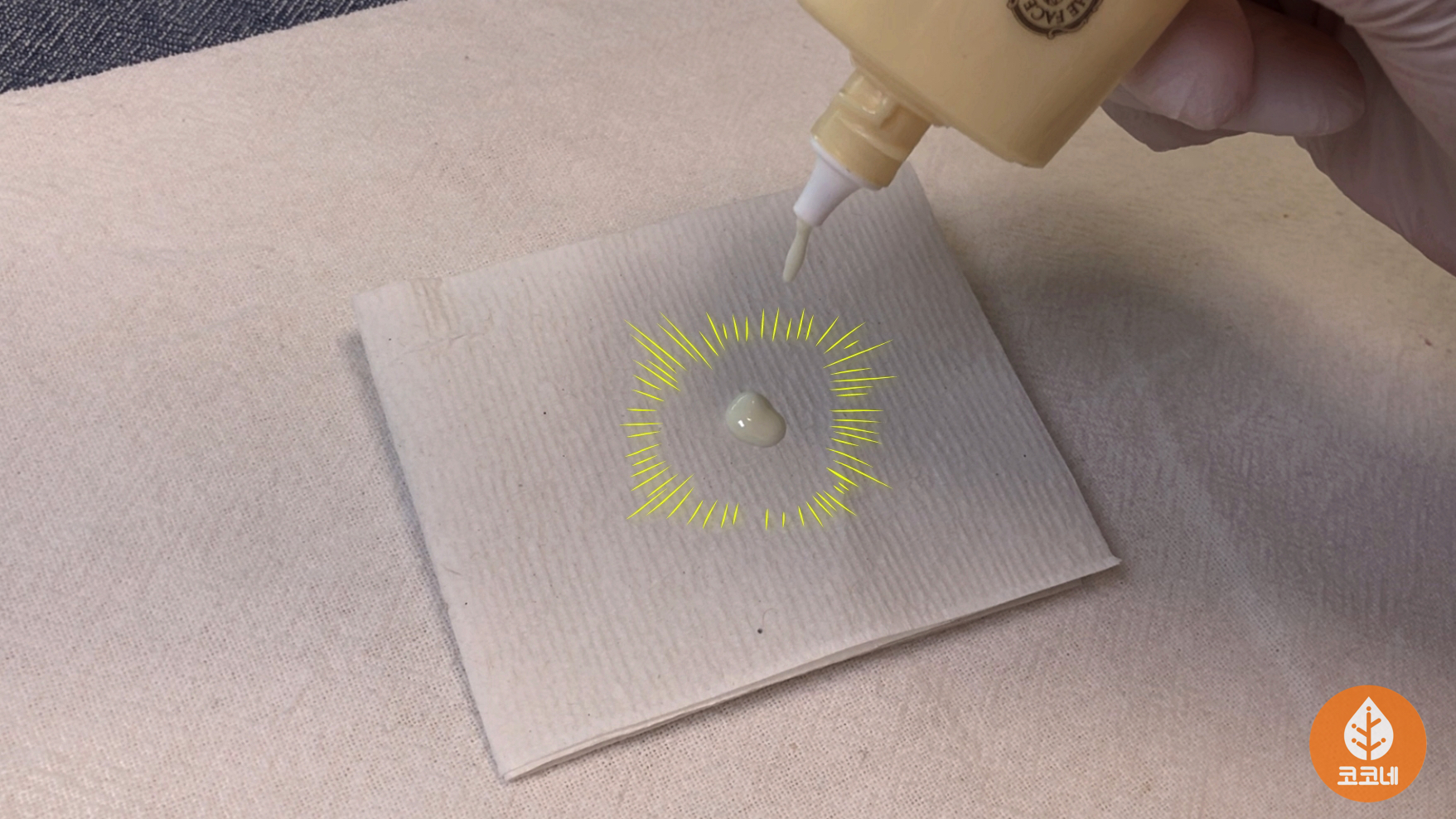 스티커 떼어낸 자리를 선크림으로 닦아주면