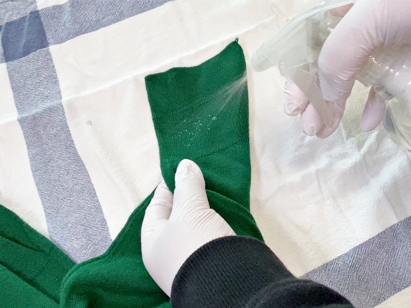 스팀의 열로 니트 조직이 조여지고 풀이 그 모양을 고정시켜