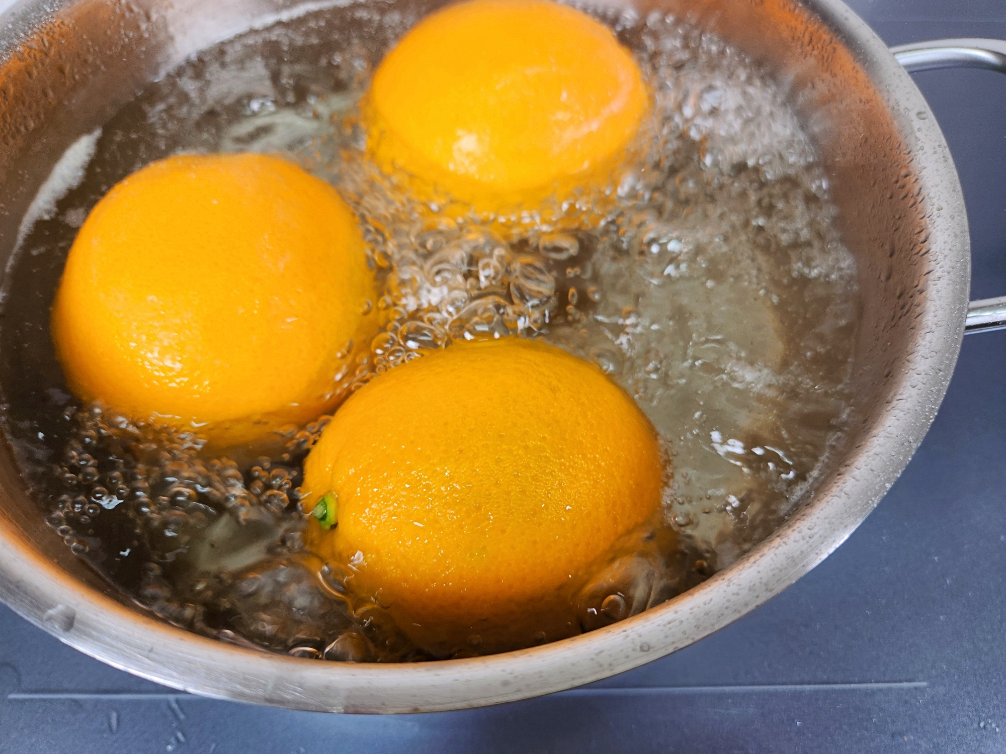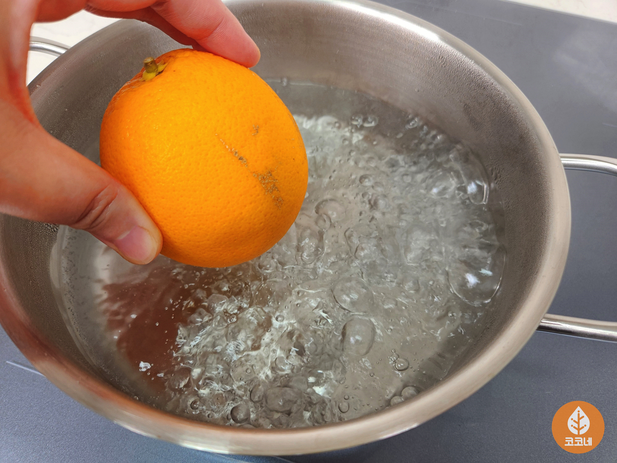 끓는물에 오렌지를 담가주세요~!