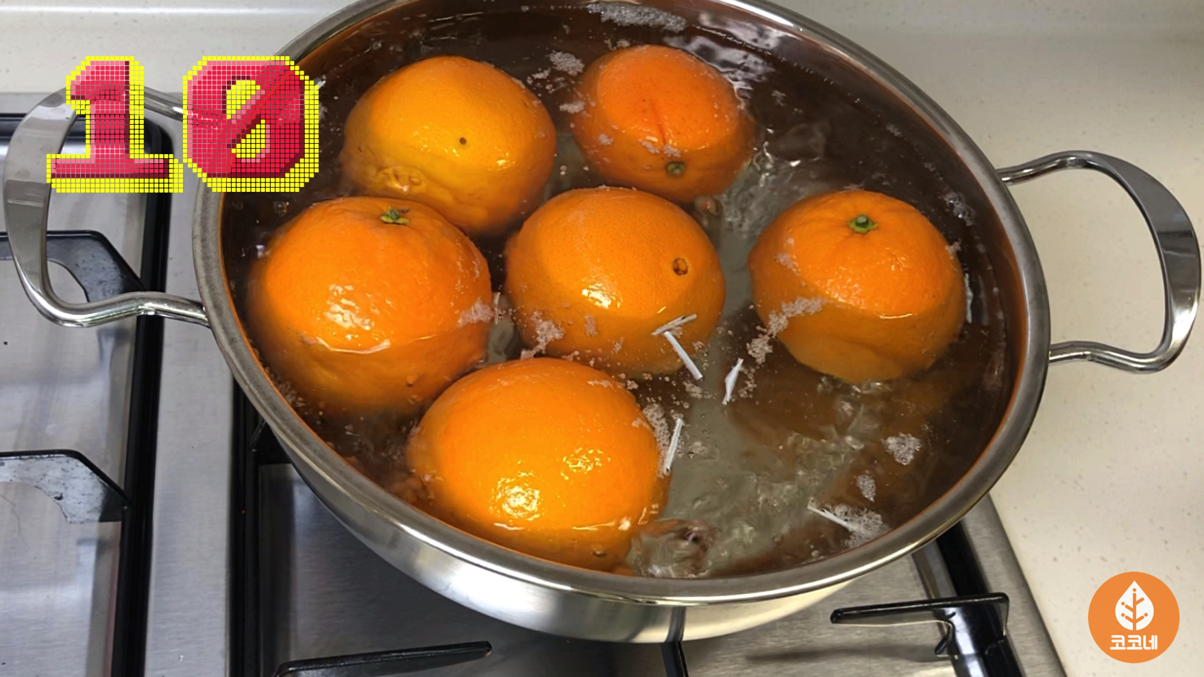 뜨거운물에 오렌지를 딱 10초만 담그는 거예요.