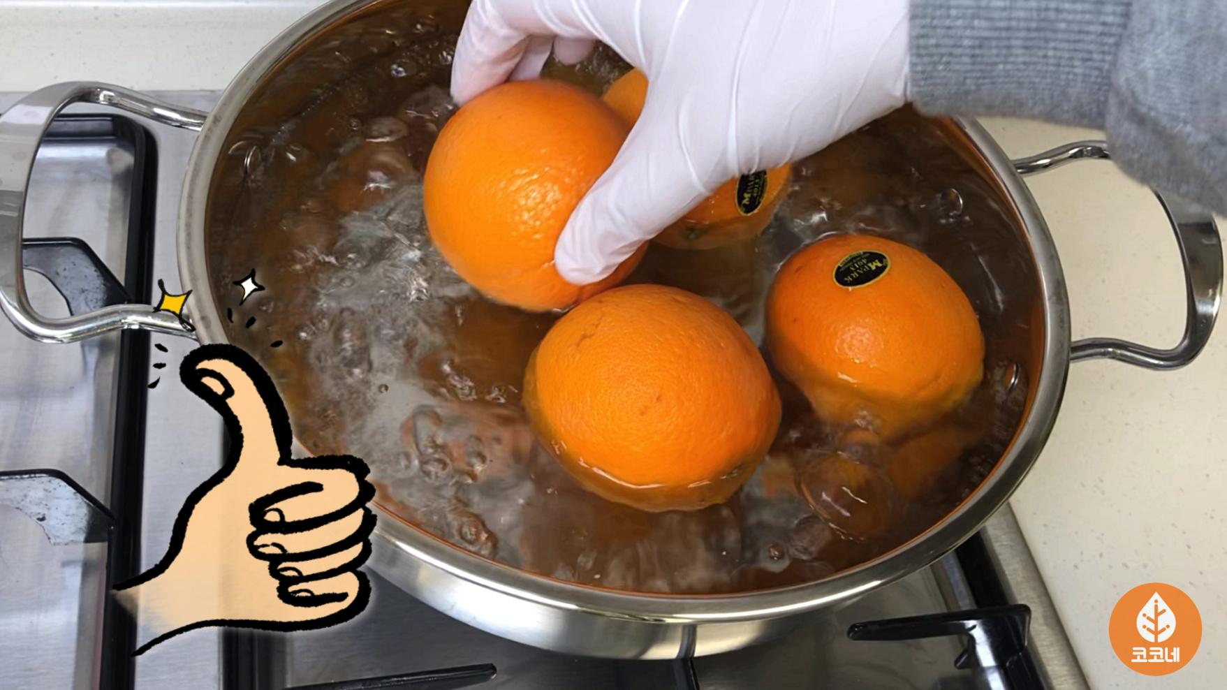 오렌지를 뜨거운물에 담그면 벌어지는 일