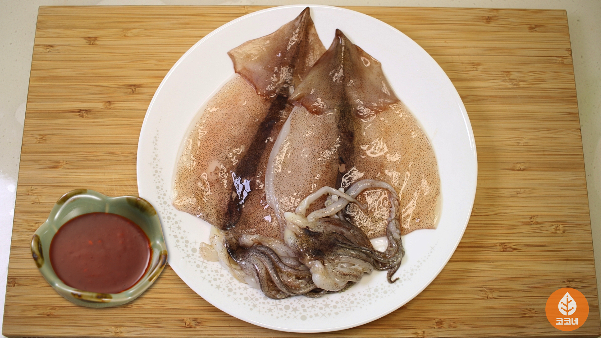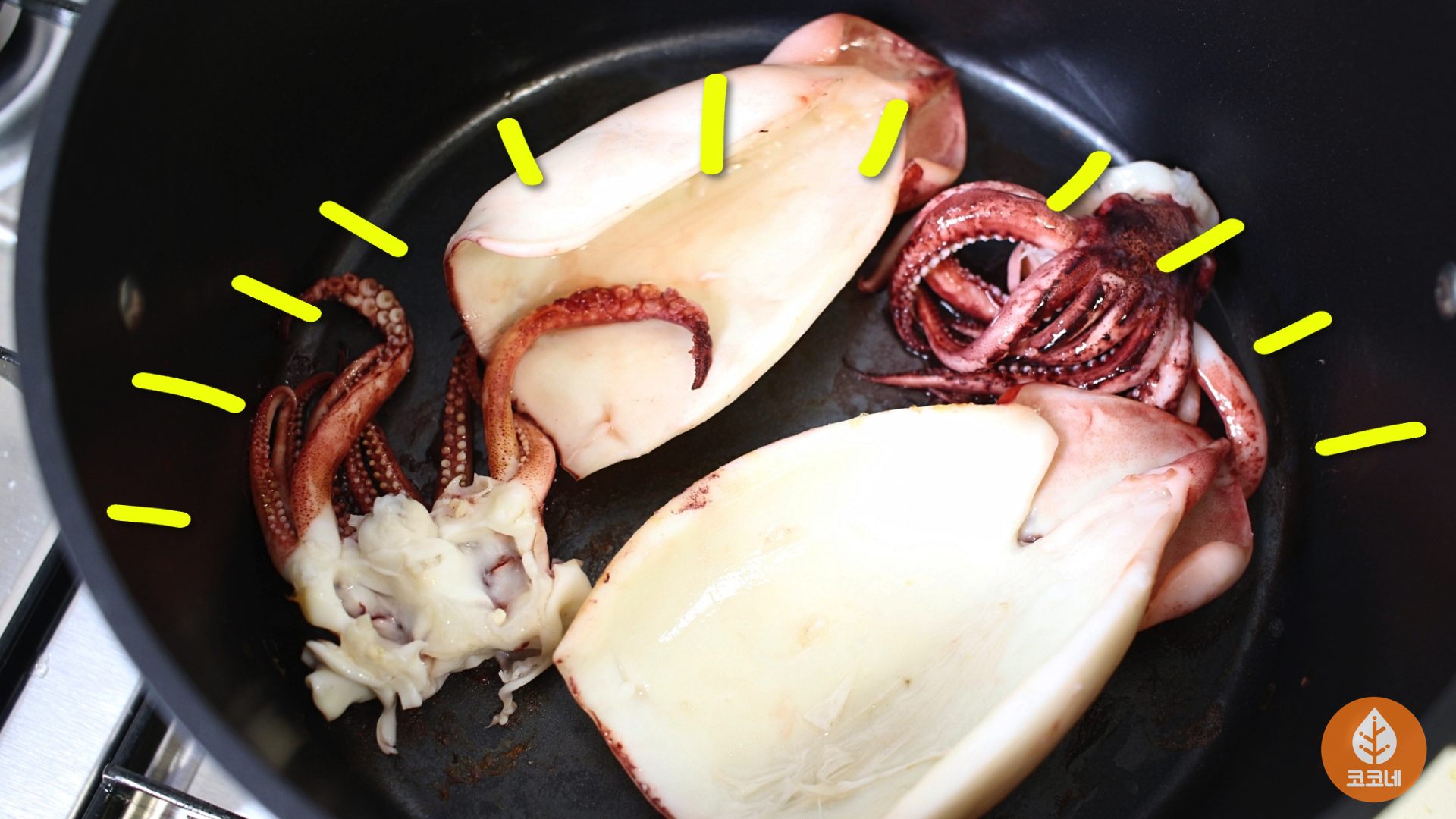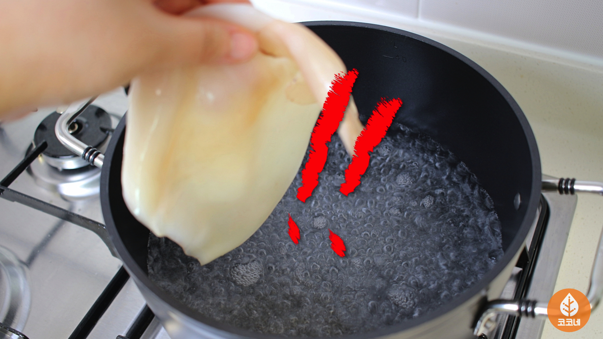 끓는물에 데친 오징어보다 물이 덜 생겨서