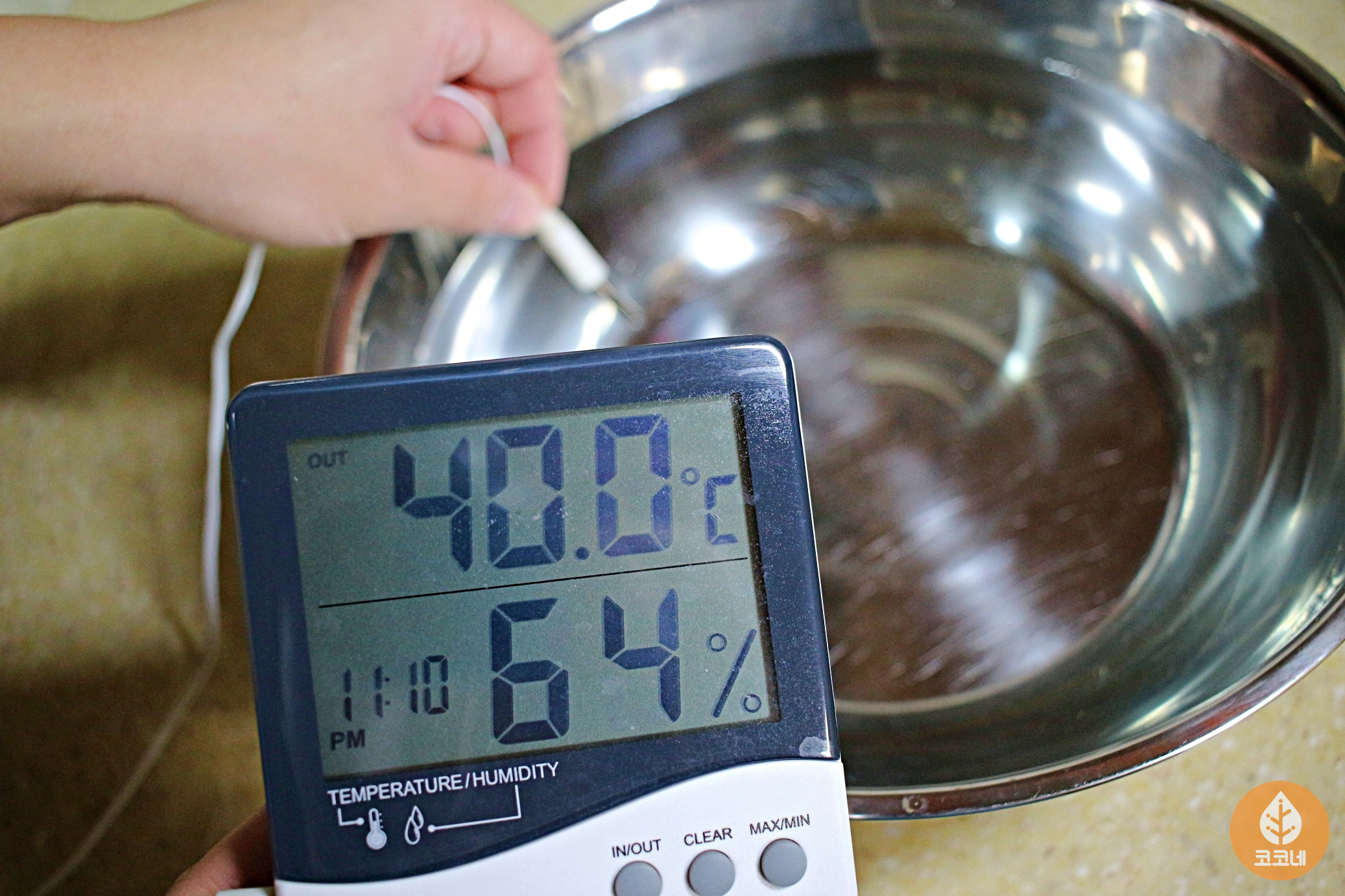 그래서 소금은 빼더라도 40도씨로 물온도를 맞추면