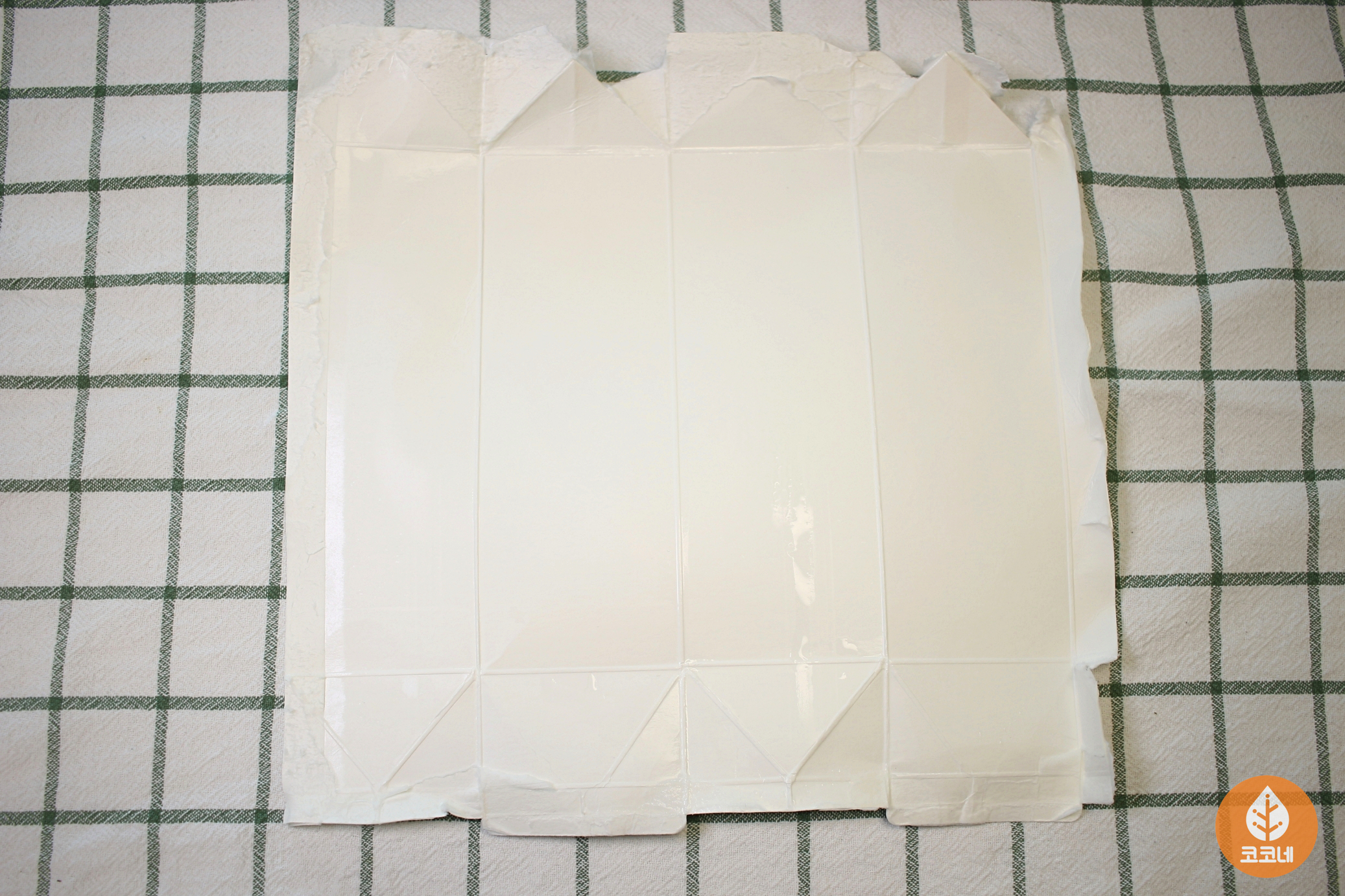깨끗하게 세척한 우유갑을 펼쳐주세요.