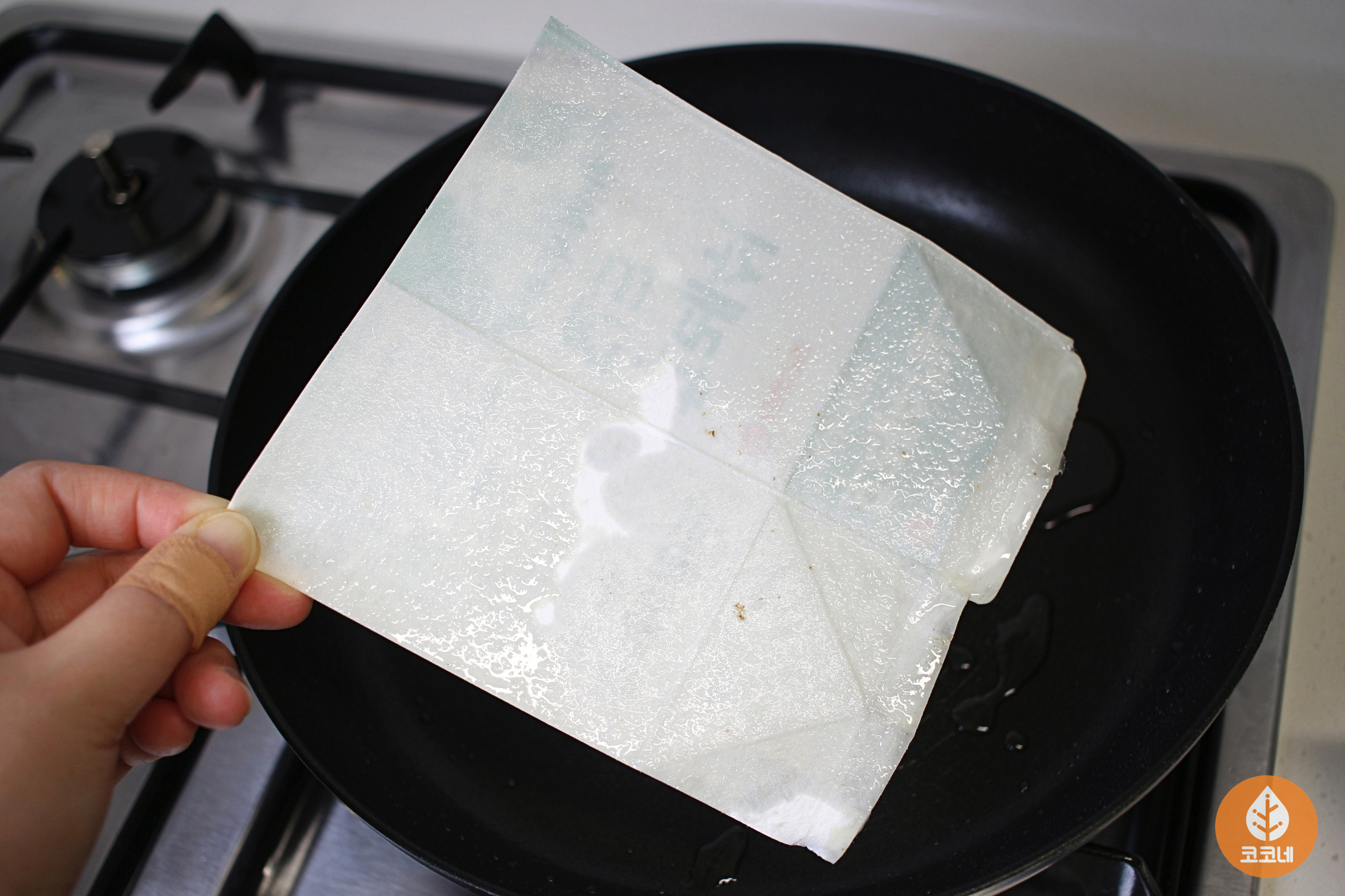 후라이팬에 살포시 올려놓으니까