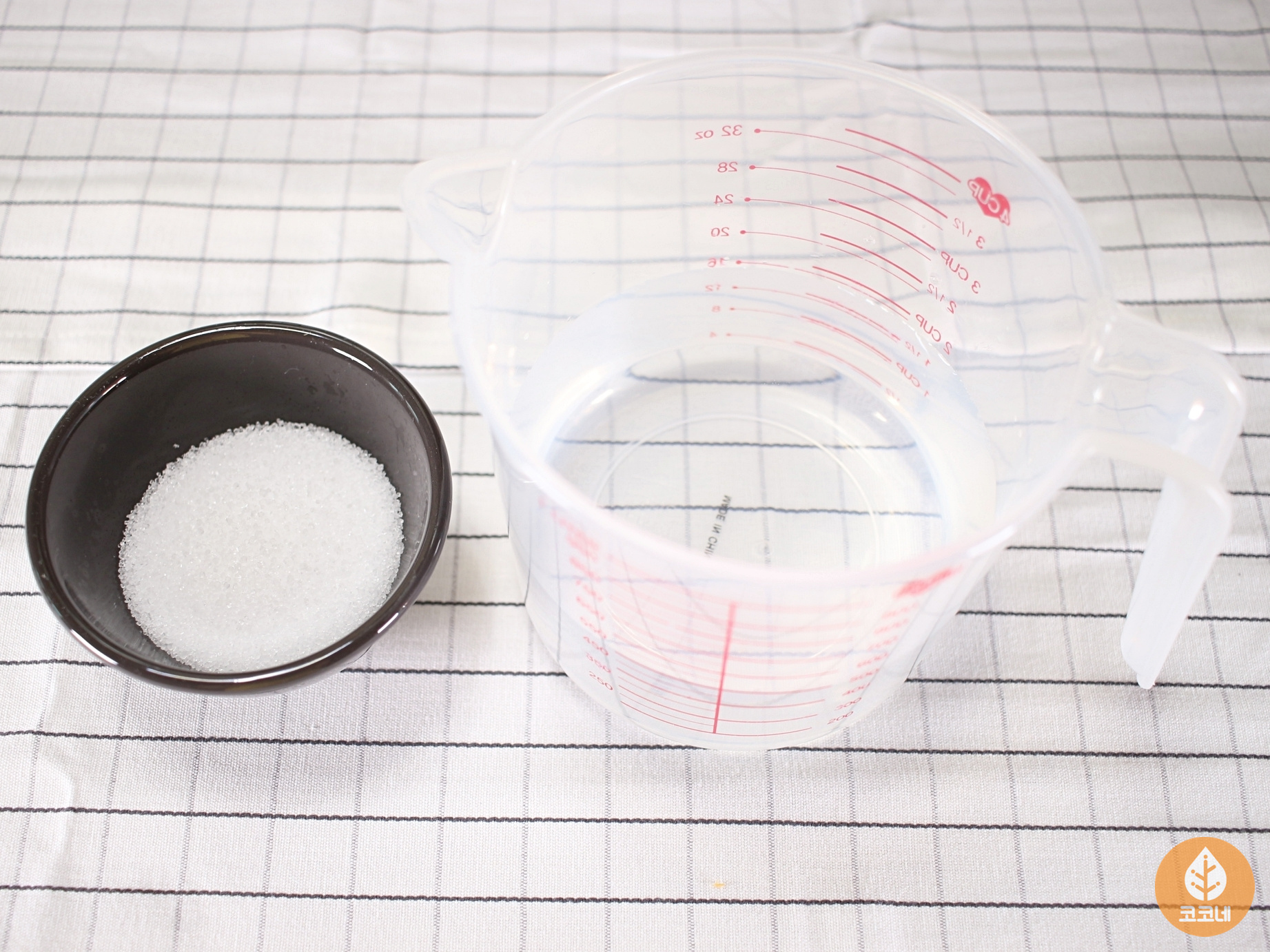 물 500ml에 구연산 2큰술을 섞어주세요.