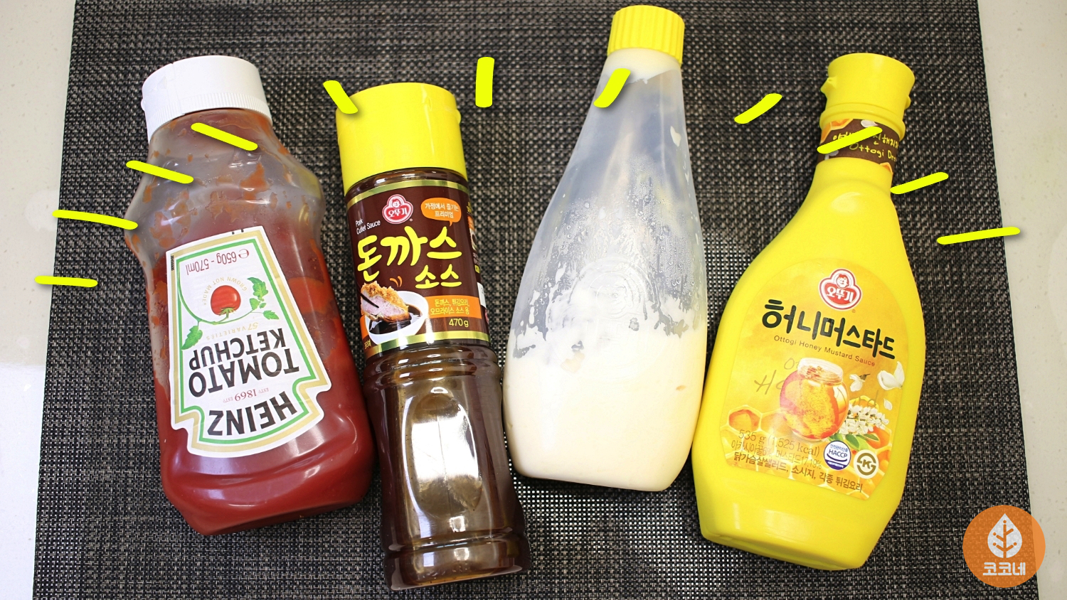 케첩, 마요네즈, 머스타드, 돈까스소스 등등