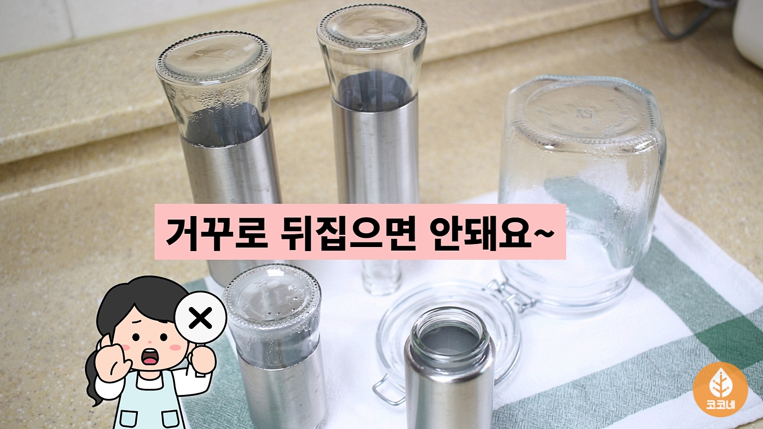 그리고 행주 위에 유리용기를 올려서