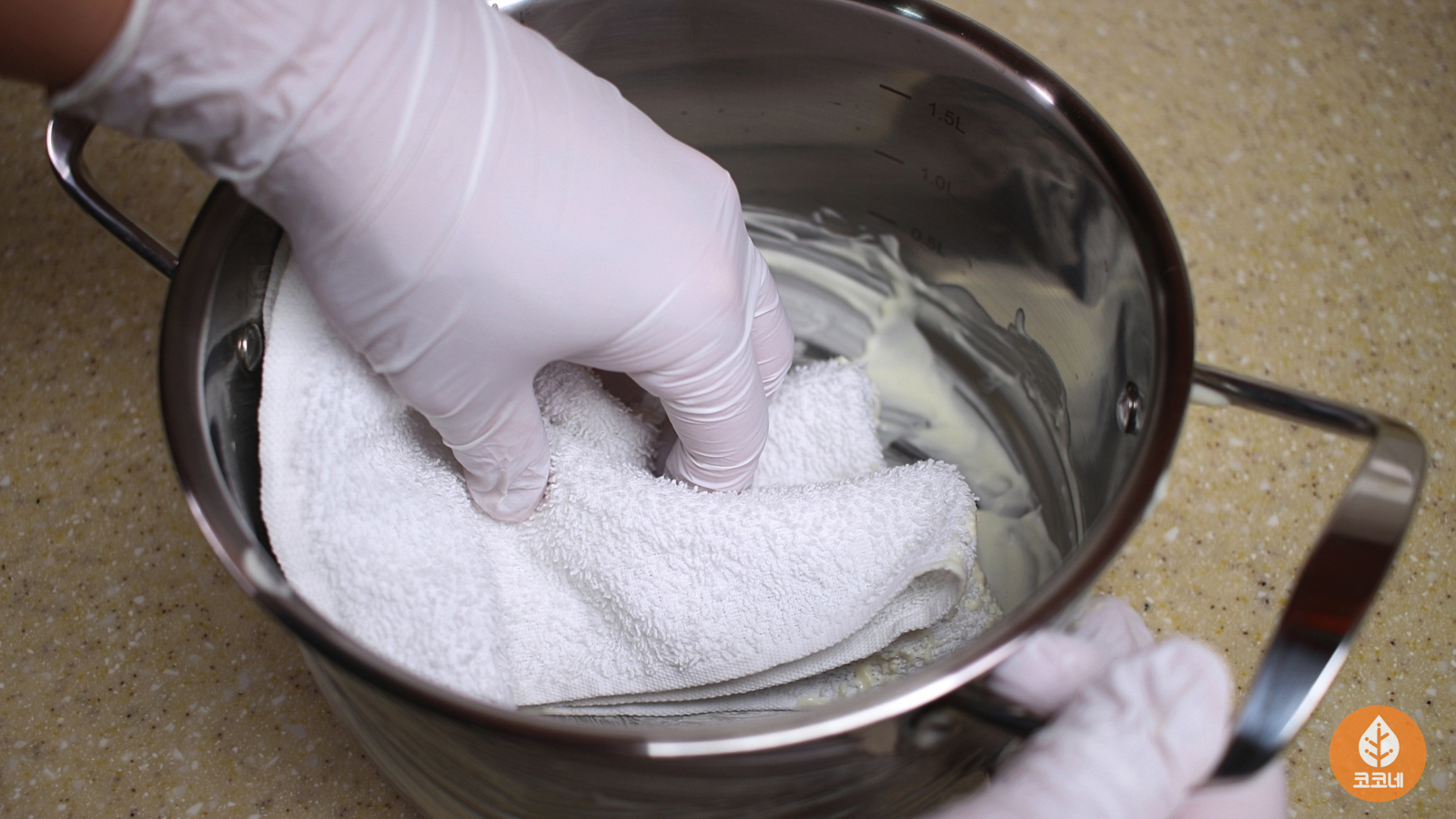 저처럼 냄비 바깥쪽에도 발라주면 좋아요.