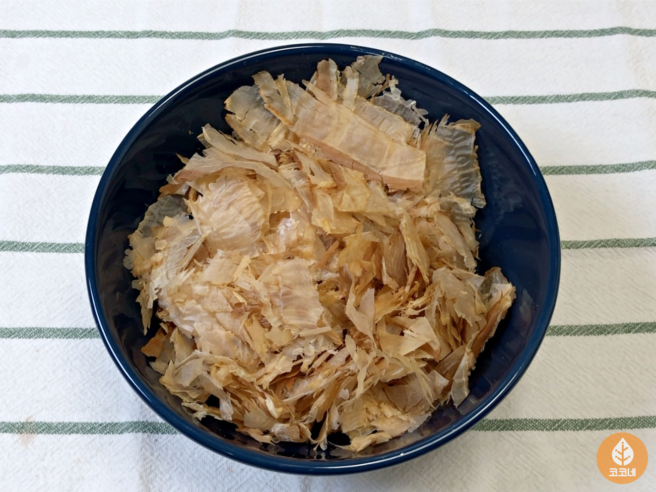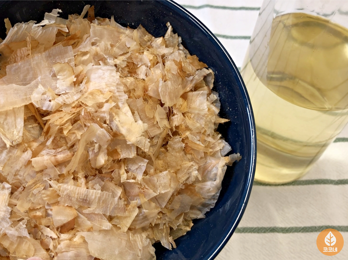 한김 식힌 물에 가쓰오부시로 육수를 나면