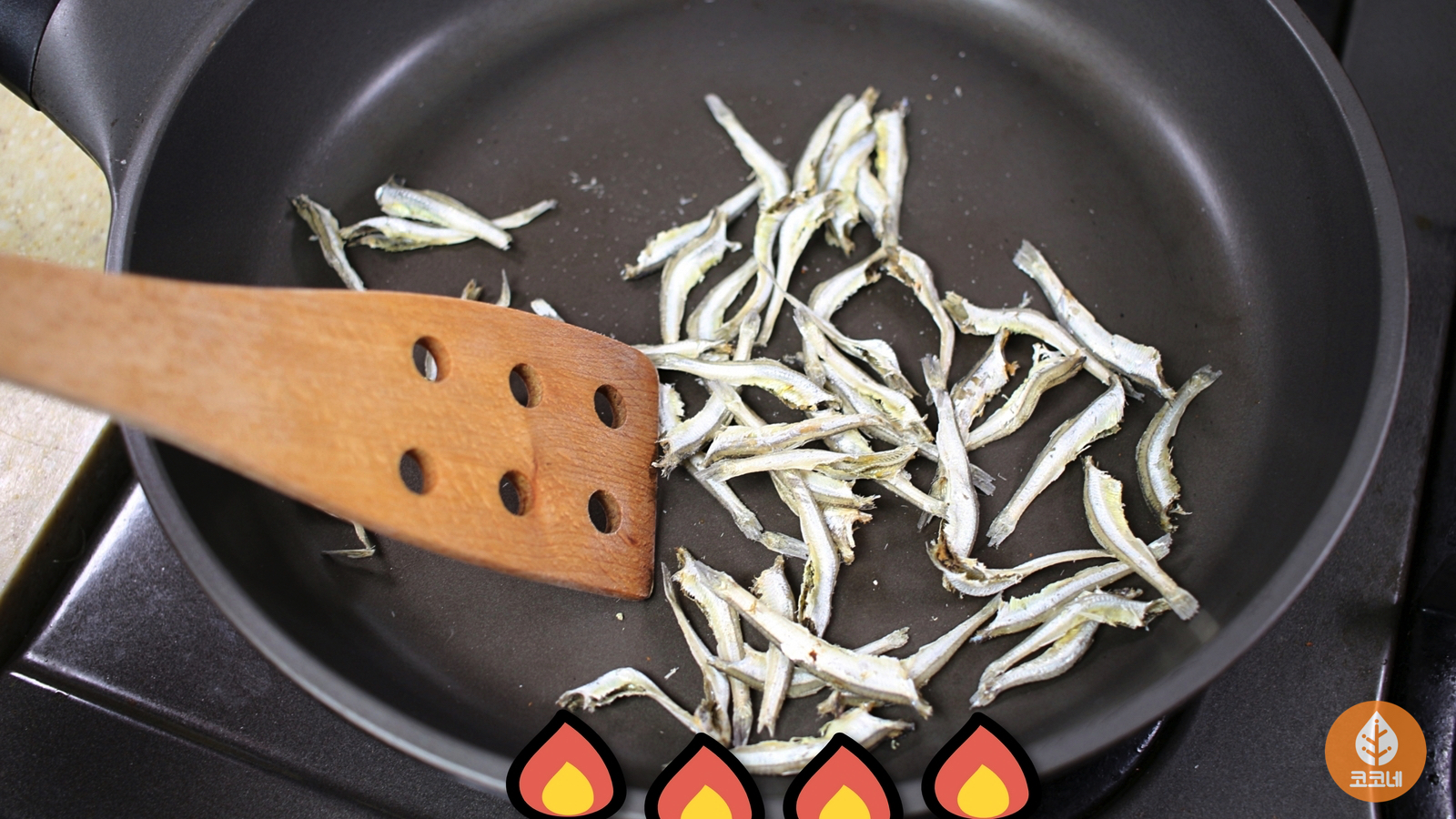 아무것도 두르지 않은 프라이팬에서