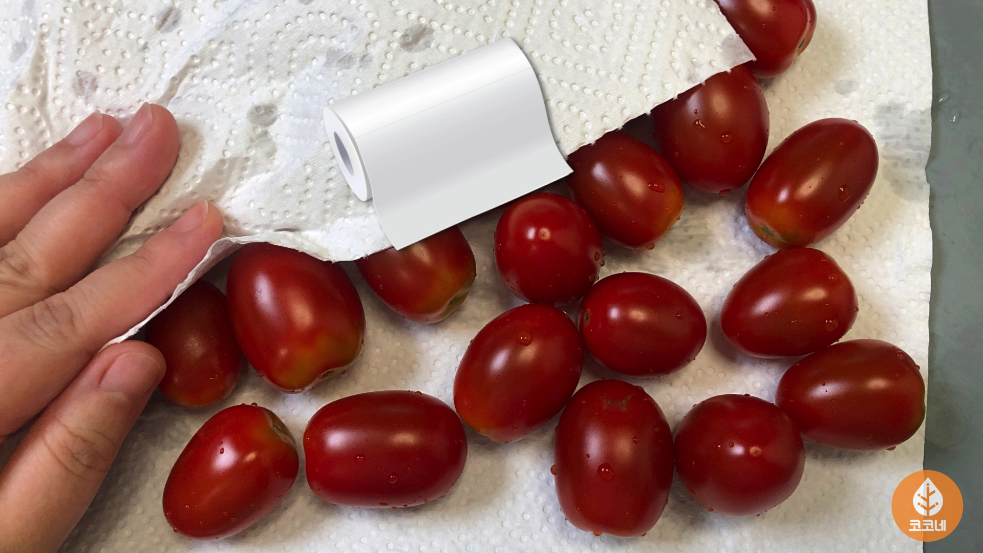 이제 방울토마토에 남아있는 물기를