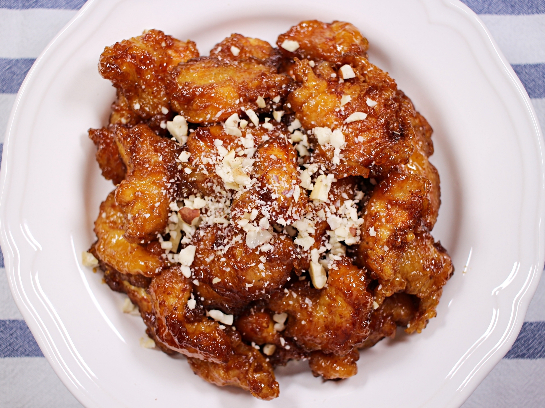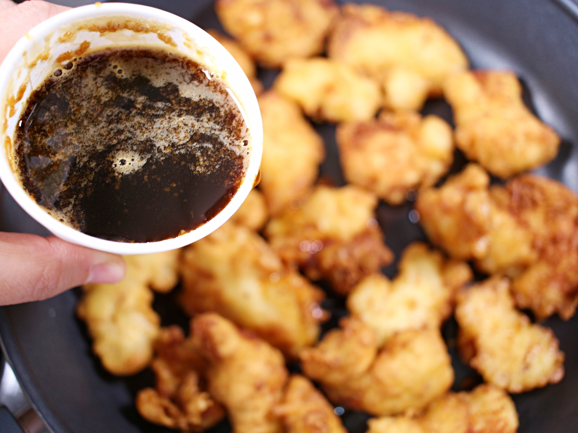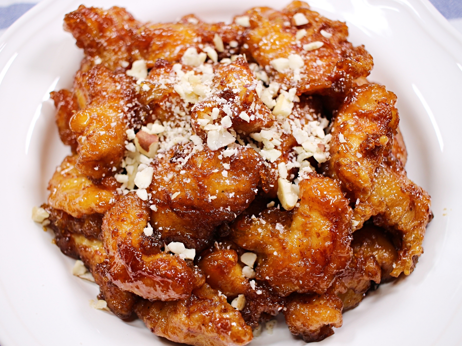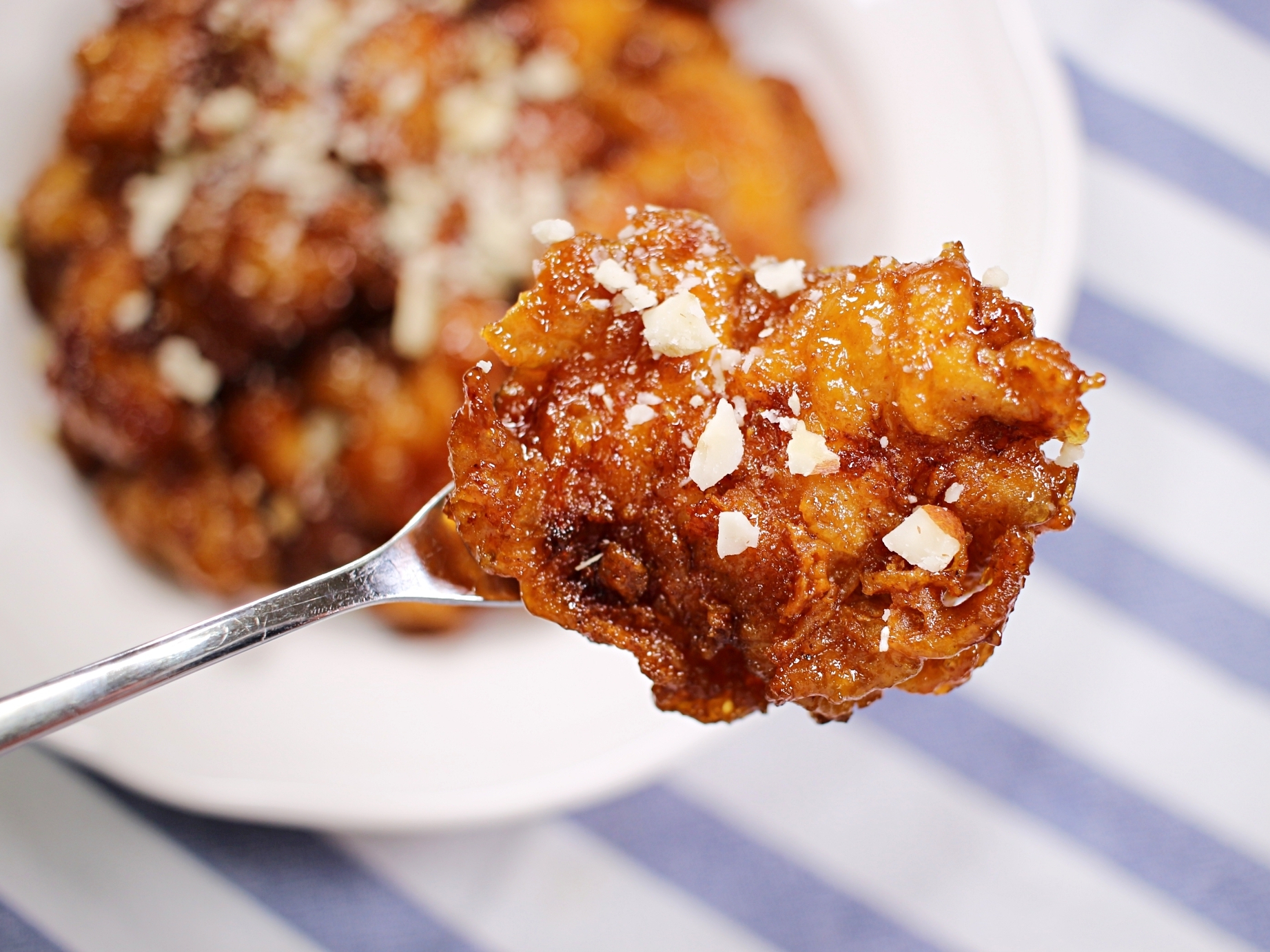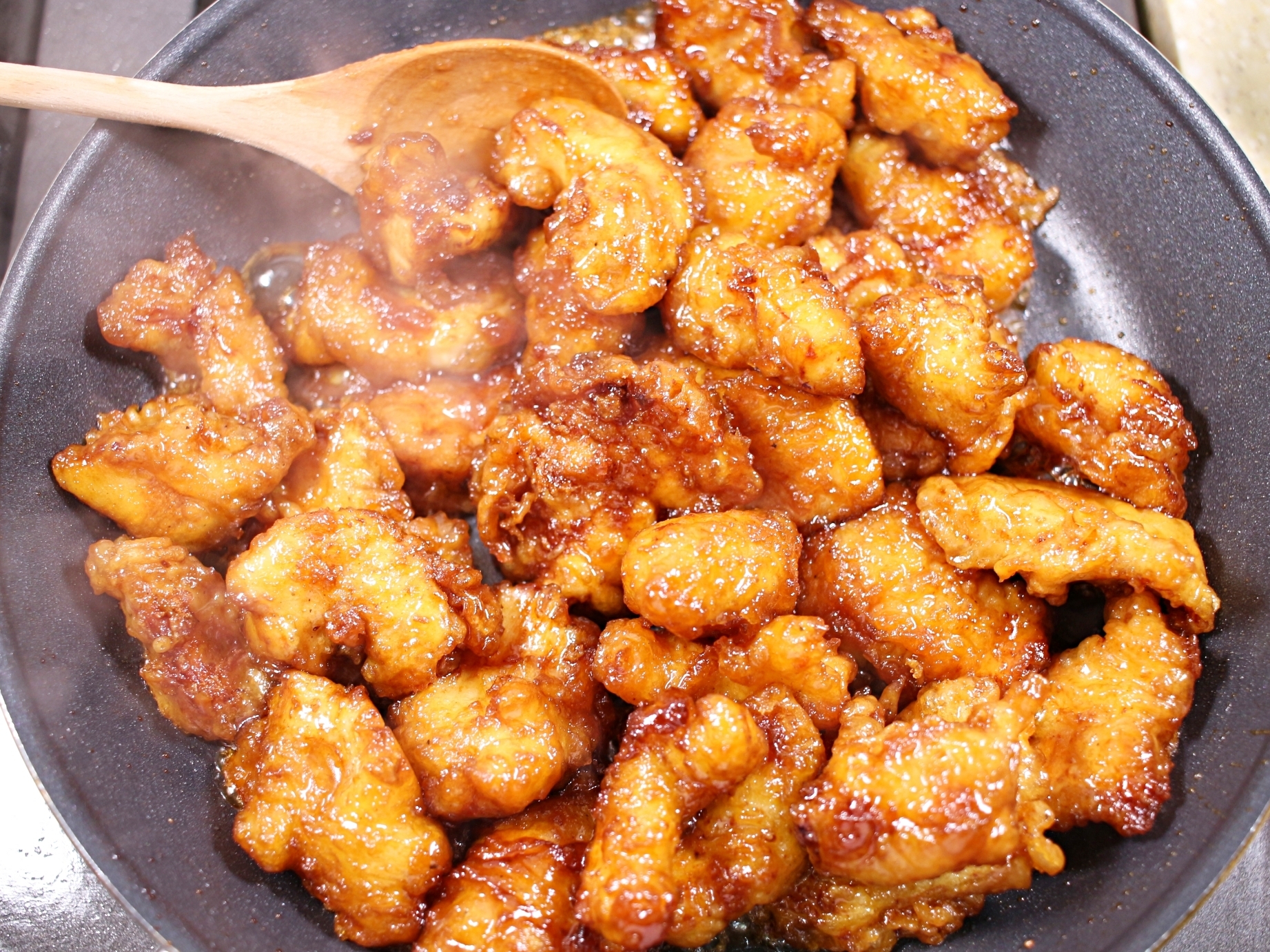바삭한 튀김옷과 윤기 자르르 흐르는 양념 코팅.