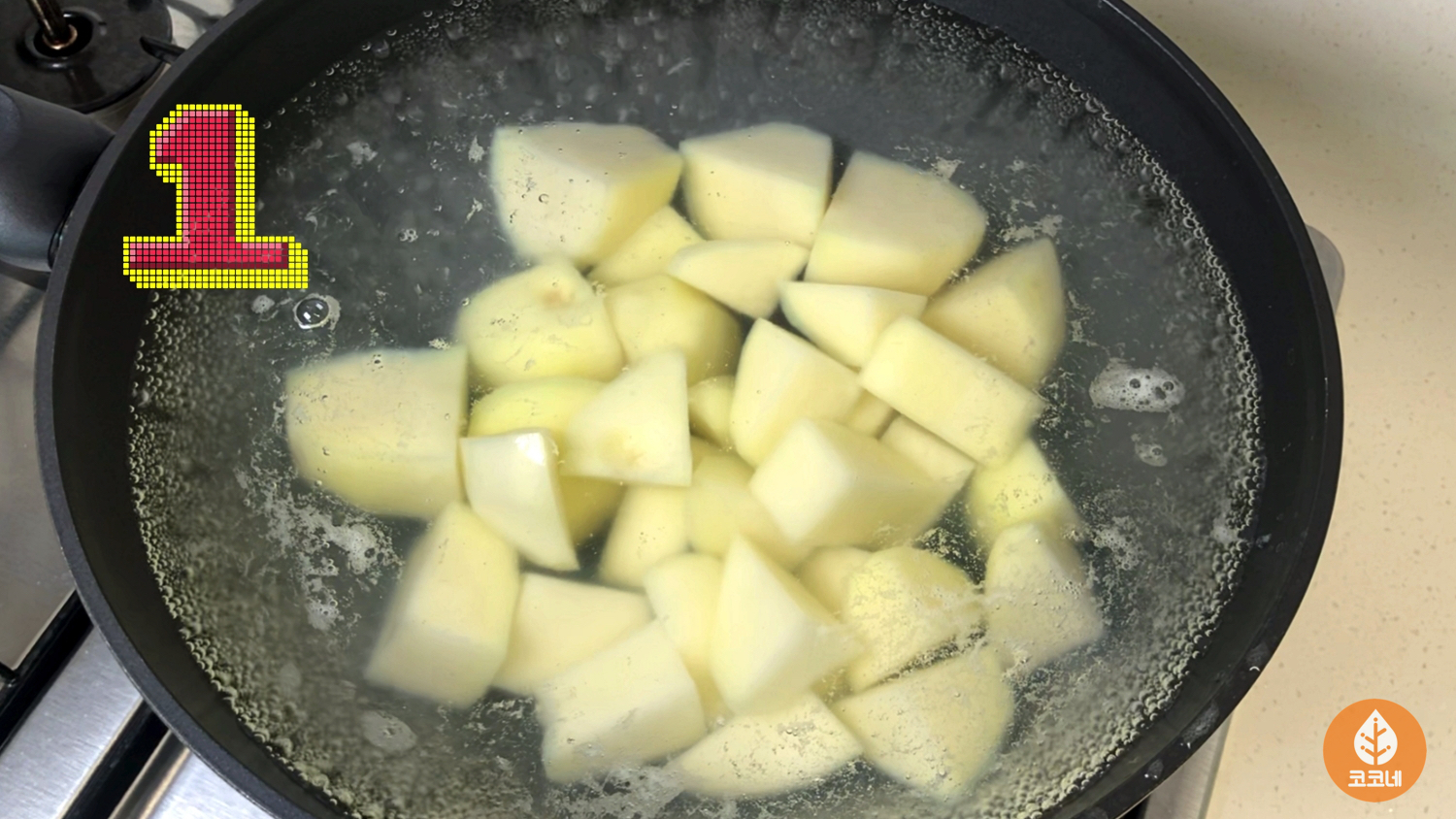 물이 끓으면 감자를 넣어서