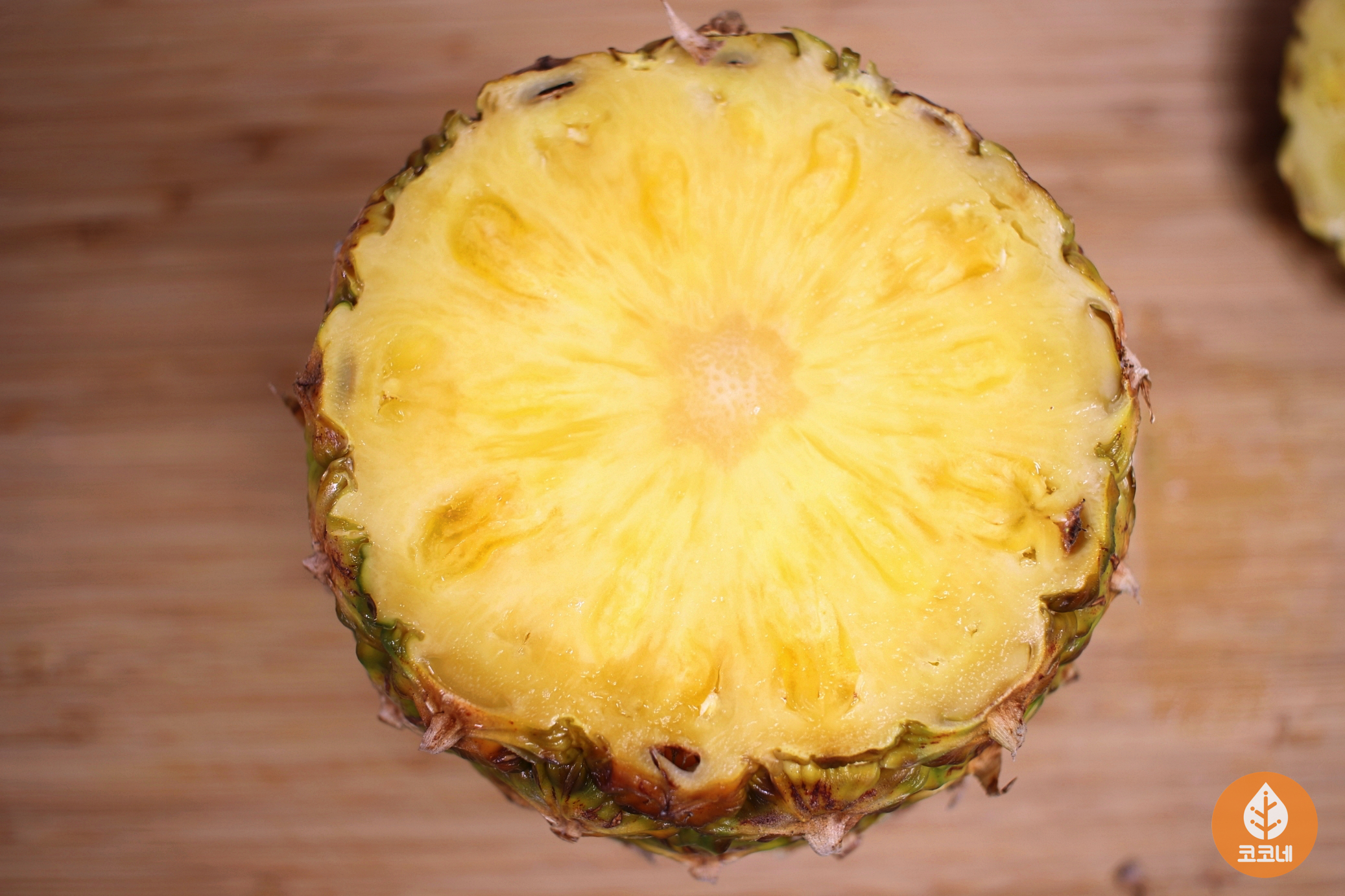 밑동 부분만 노란 파인애플이 많은데요.
