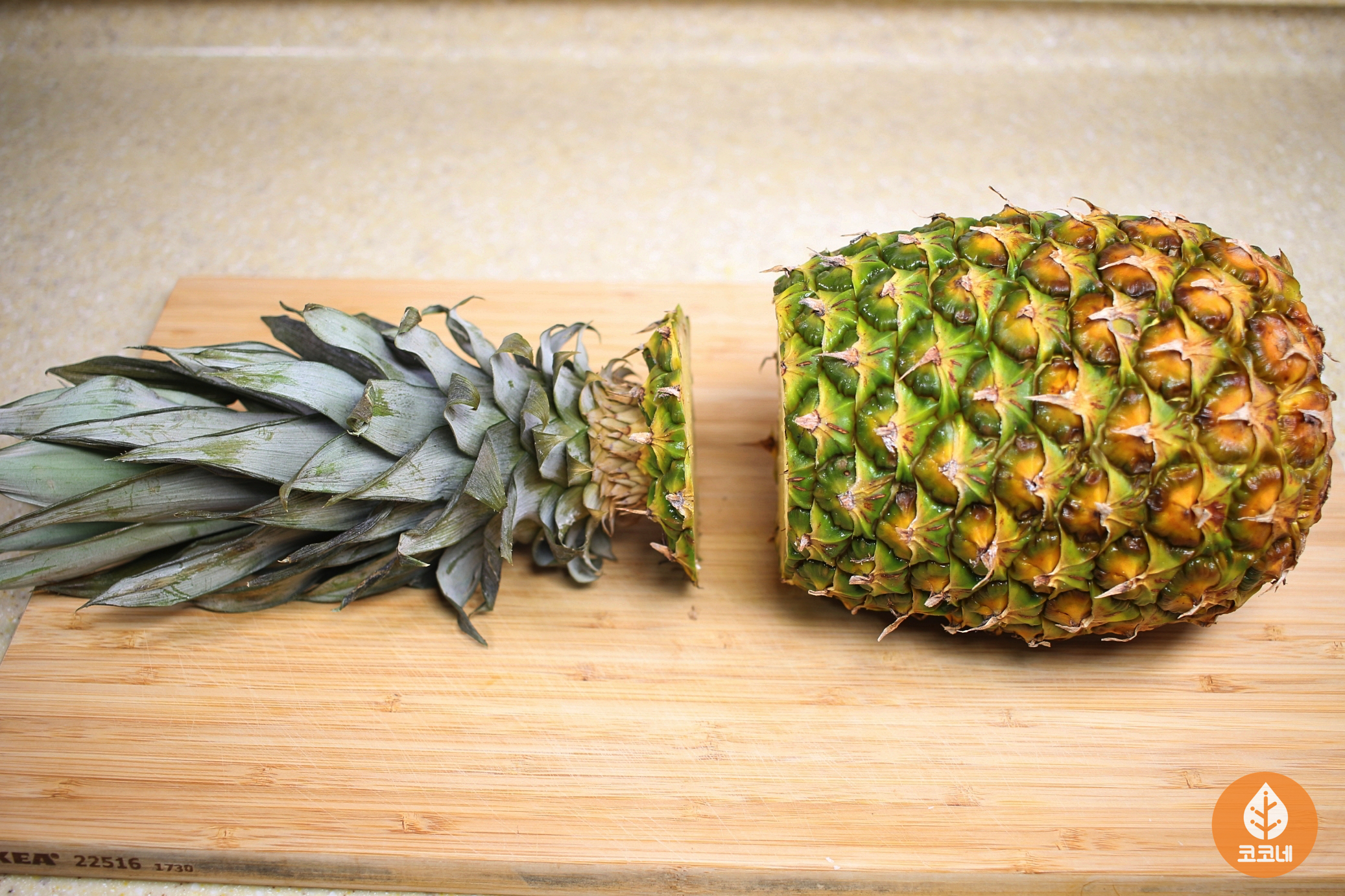 파인애플 잎부분을 잘라내 주세요.