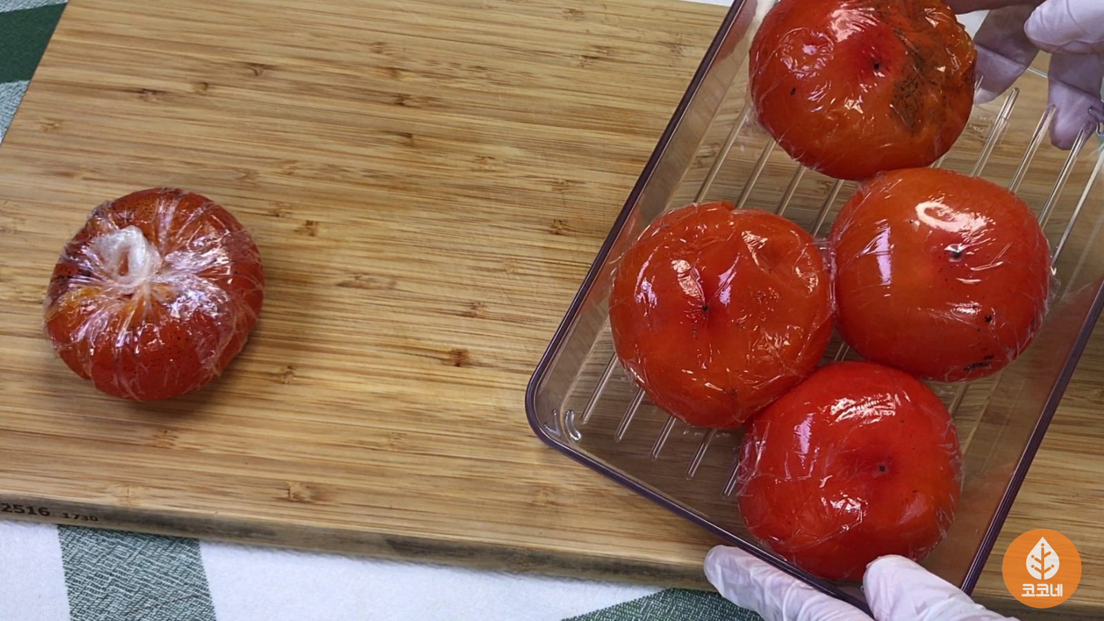 홍시와 랩을 밀착시켜서 포장하고