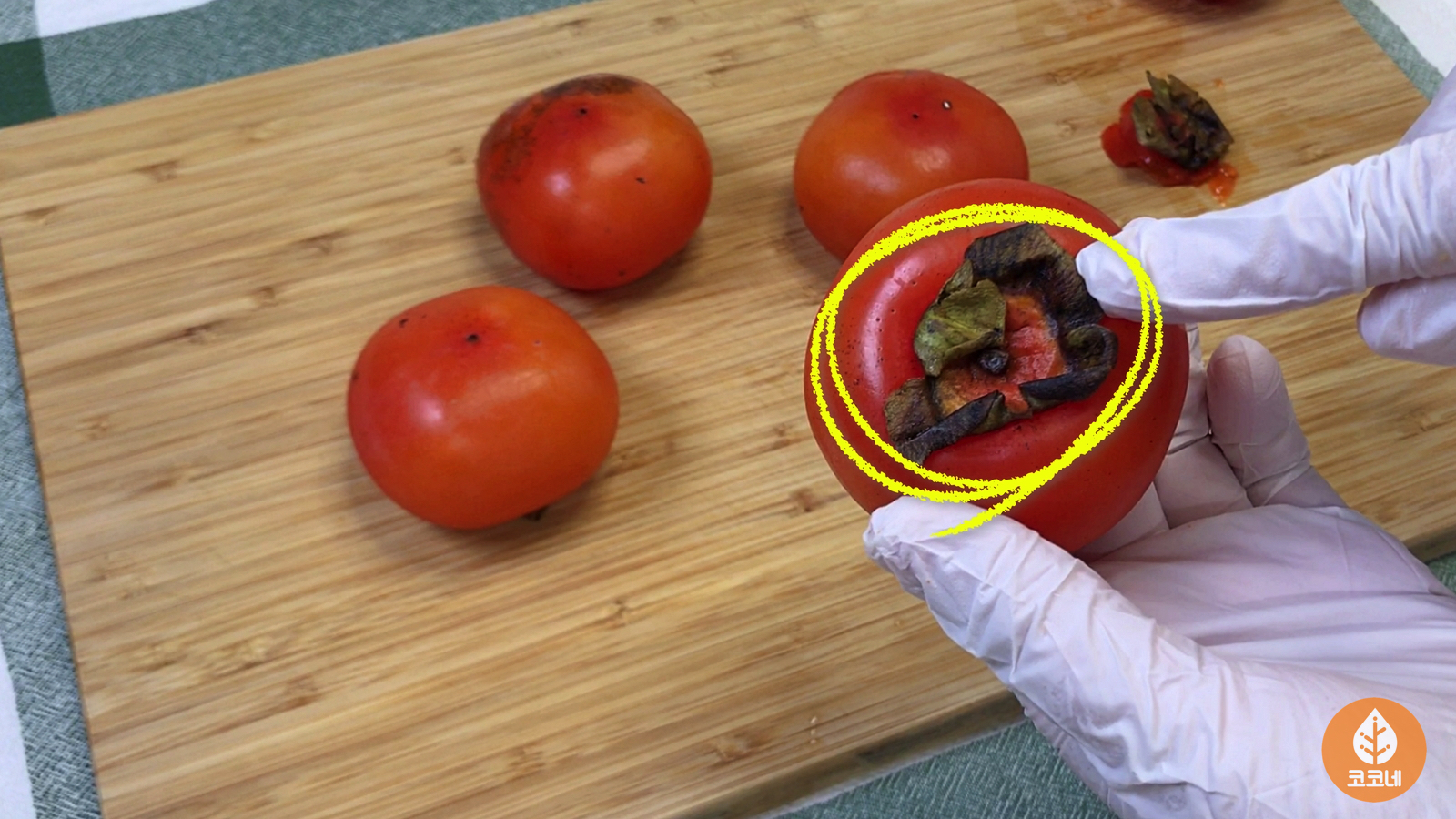 홍시 꼭지를 제거할 거예요.