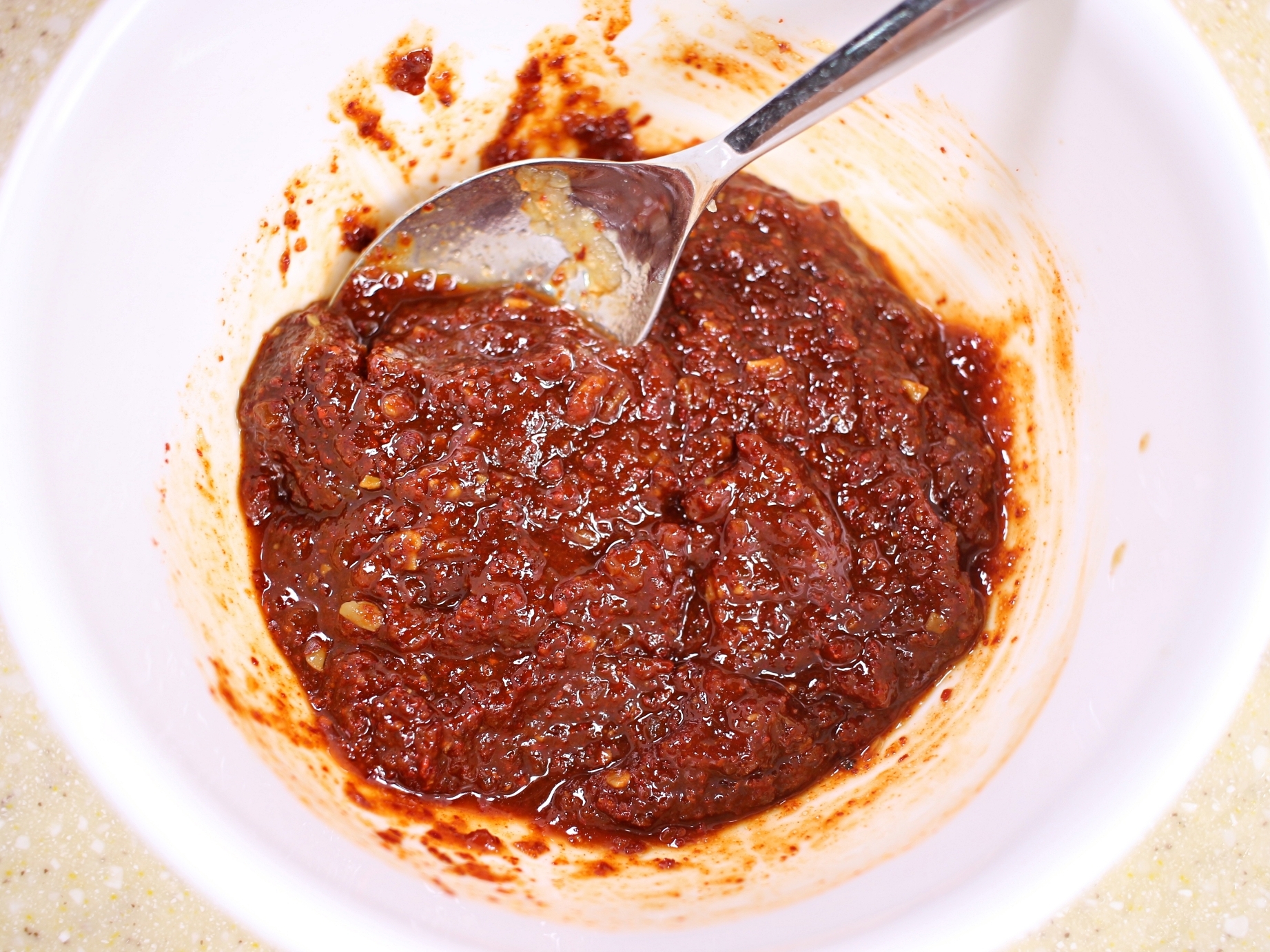 고추장1, 된장1/3, 고춧가루2, 설탕1, 간장4, 다진마늘1