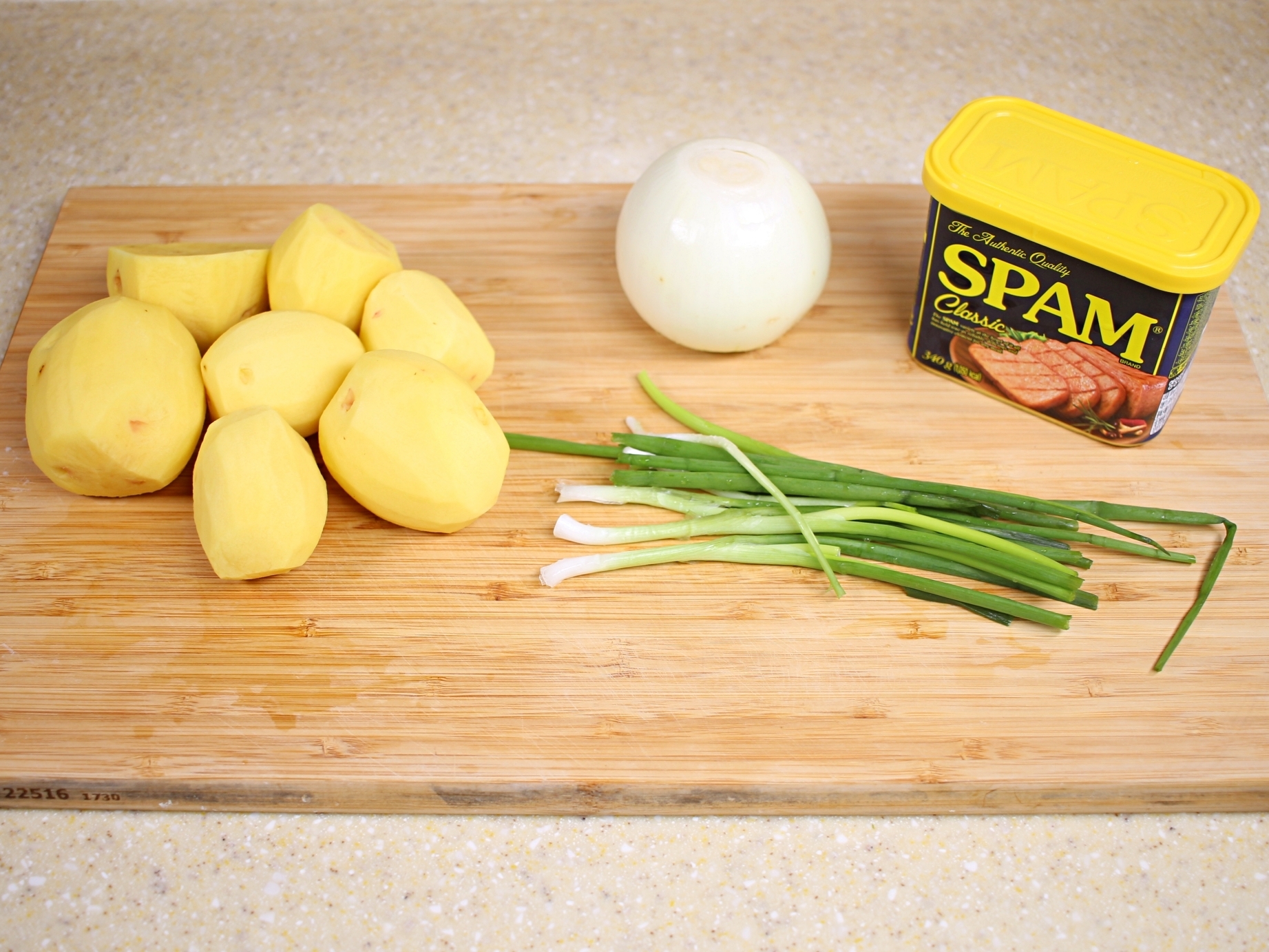 재료는 감자, 양파, 스팸, 대파 준비했고요.