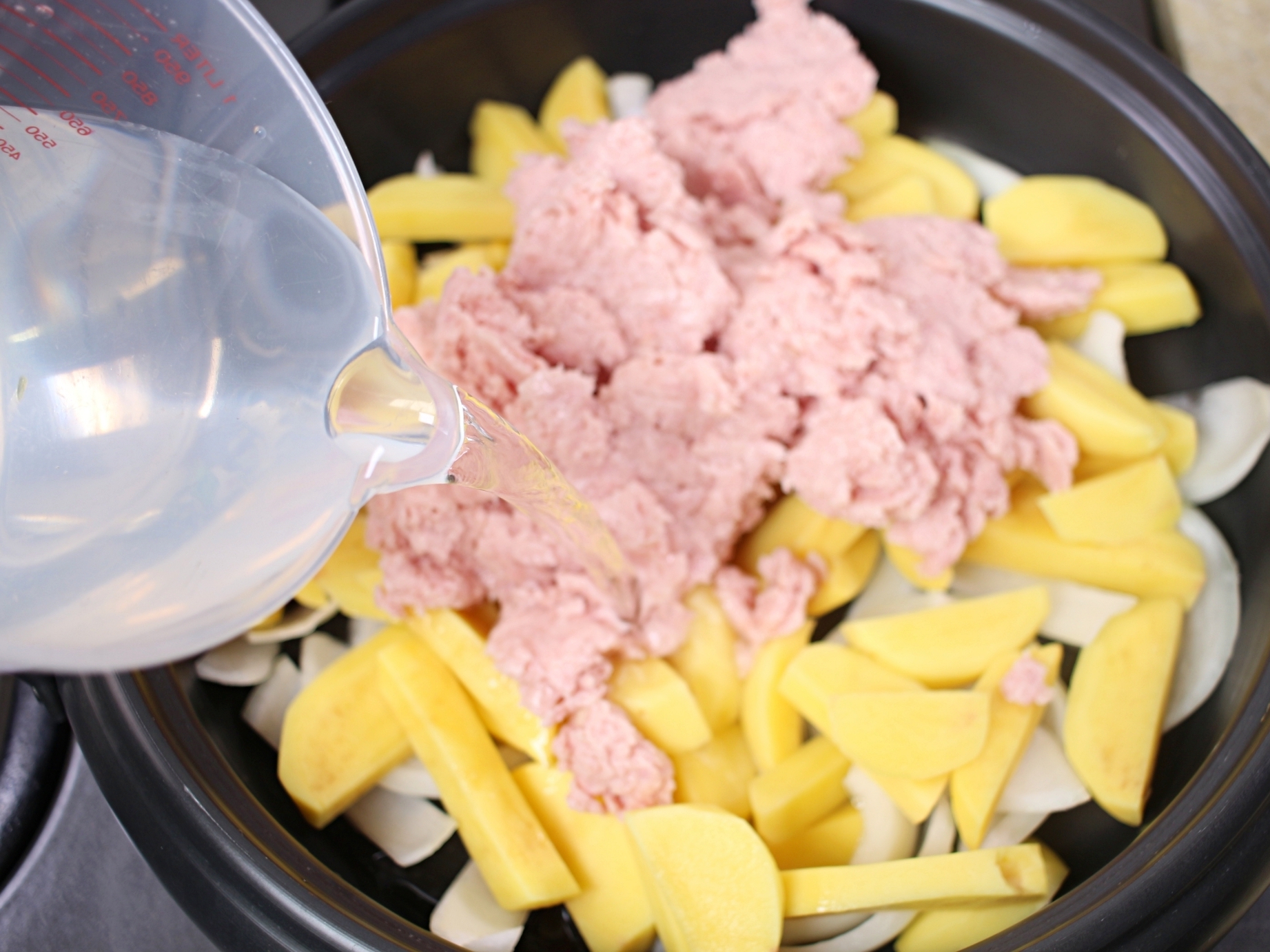 재료가 살짝 잠길 정도로만 물을 부어요.
