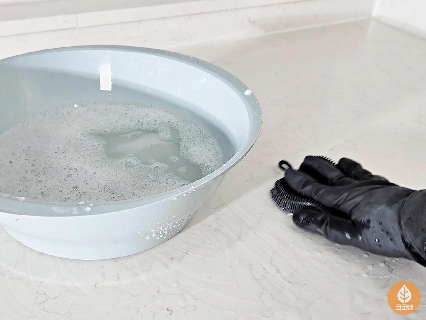 이때, 흠집이 나지 않게 부드러운 수세미를 사용해야 하고요.