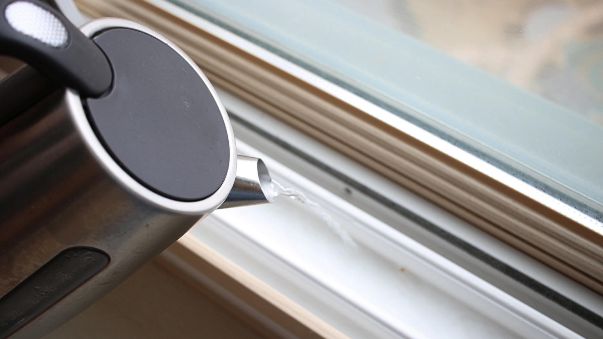 창틀에 너무 뜨겁지 않은 따뜻한 물을 부어서