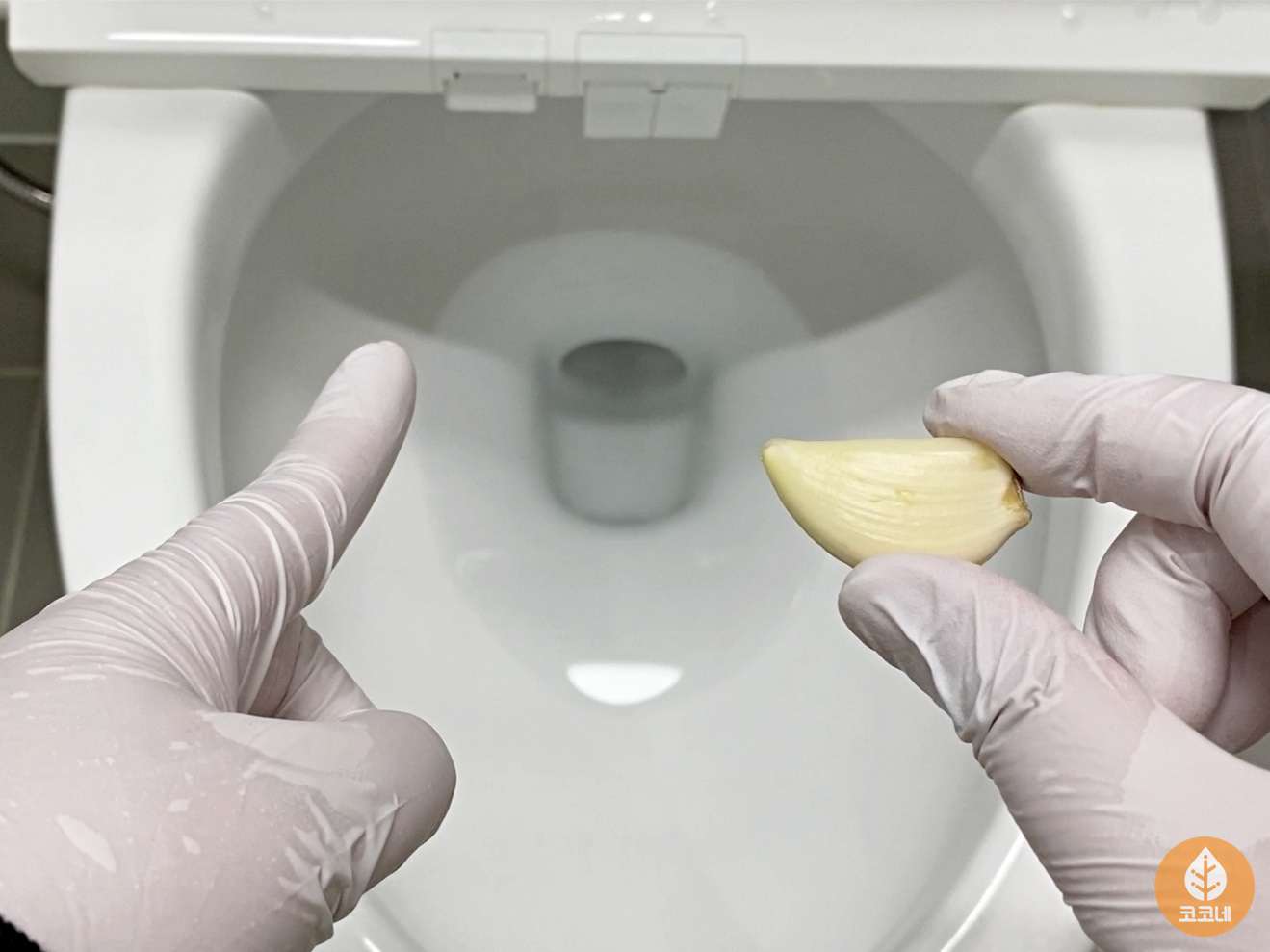 통마늘의 껍질을 까서 변기에 넣기만 하면 끝.