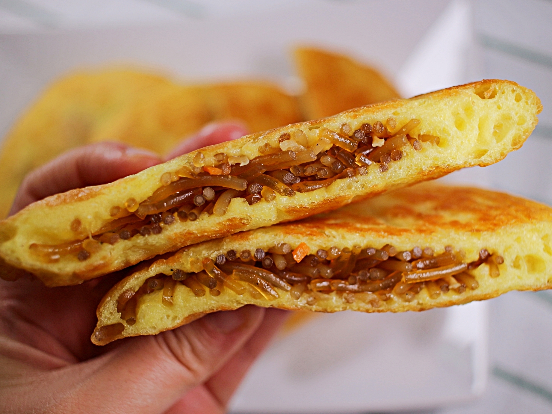 노릇노릇하게 앞뒤로 구우면 잡채호떡이 완성돼요.