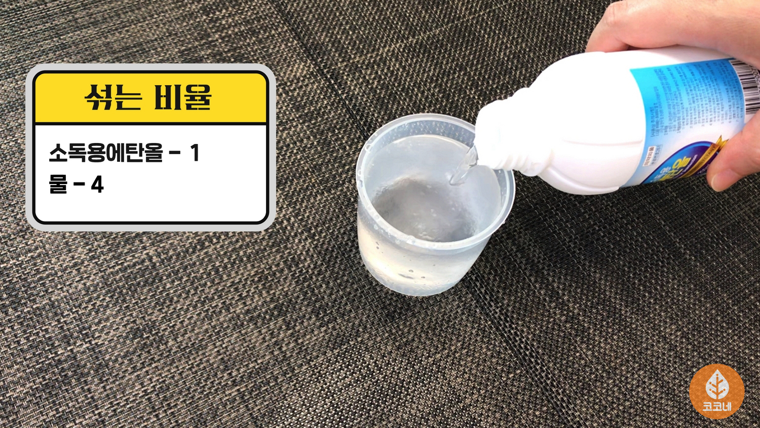 소독용에탄올과 물을 1:4 비율로 섞어주시고요.