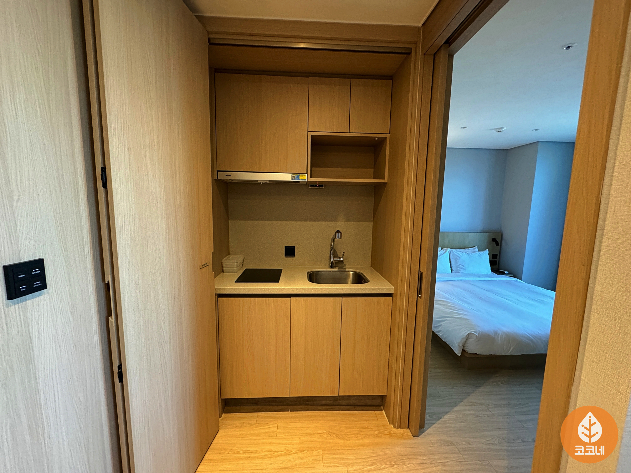 미취사 객실로 인덕션 자리는 마감재로 덮여있고요.