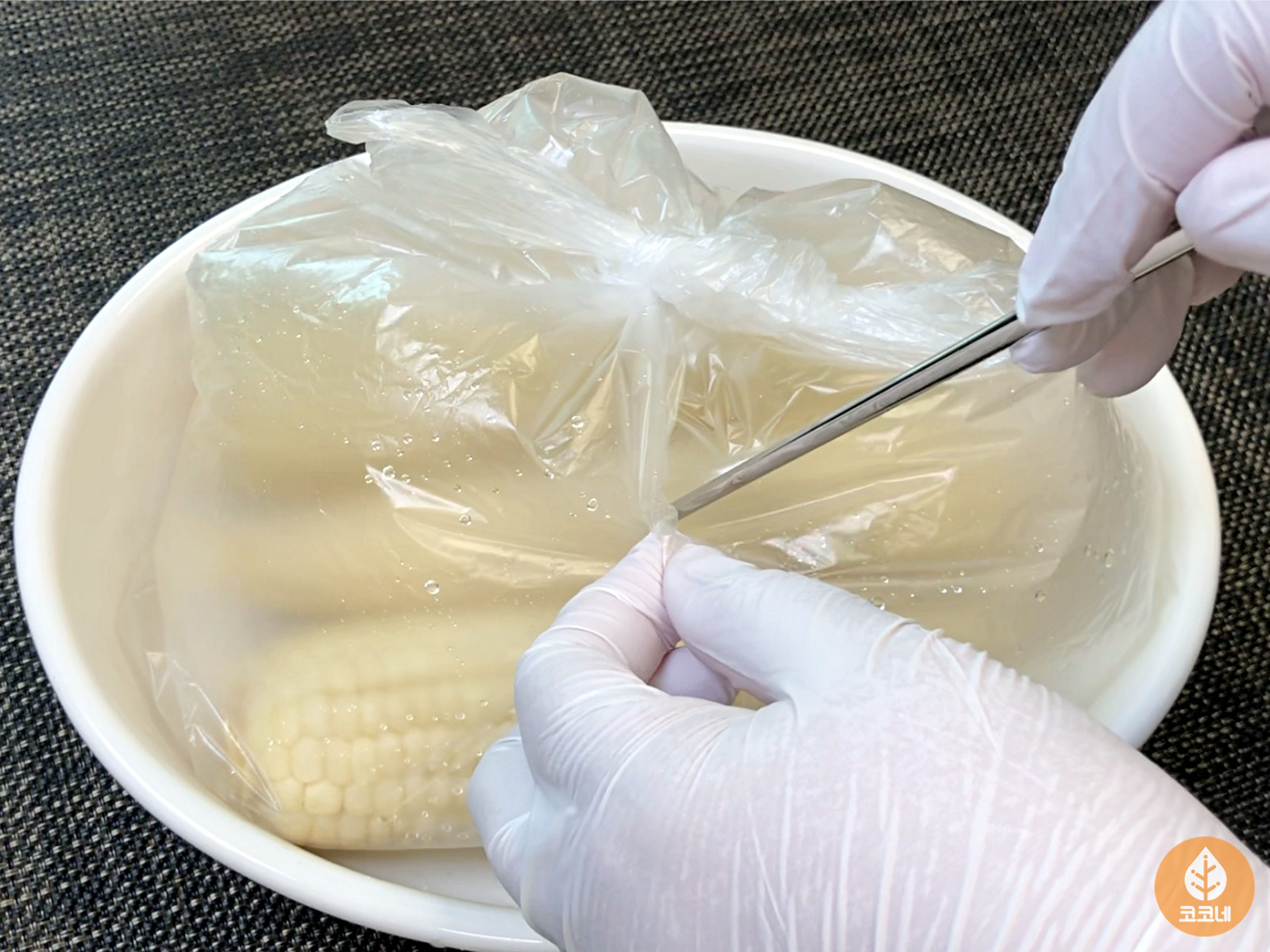 옥수수는 해동하지 않은 상태로 위생백에 담고,