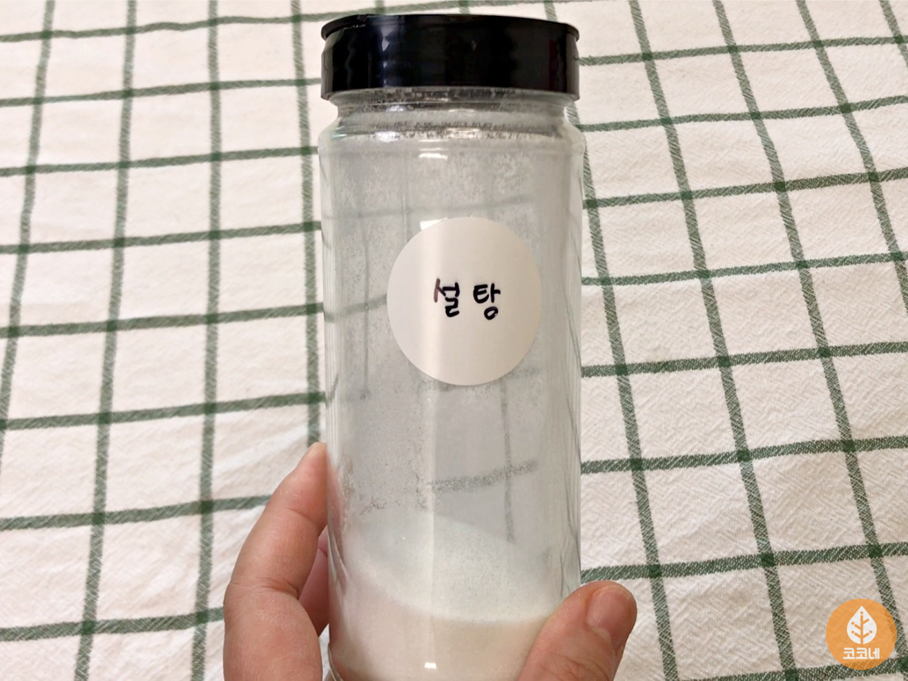 딱딱하게 굳은 설탕을 부어요.