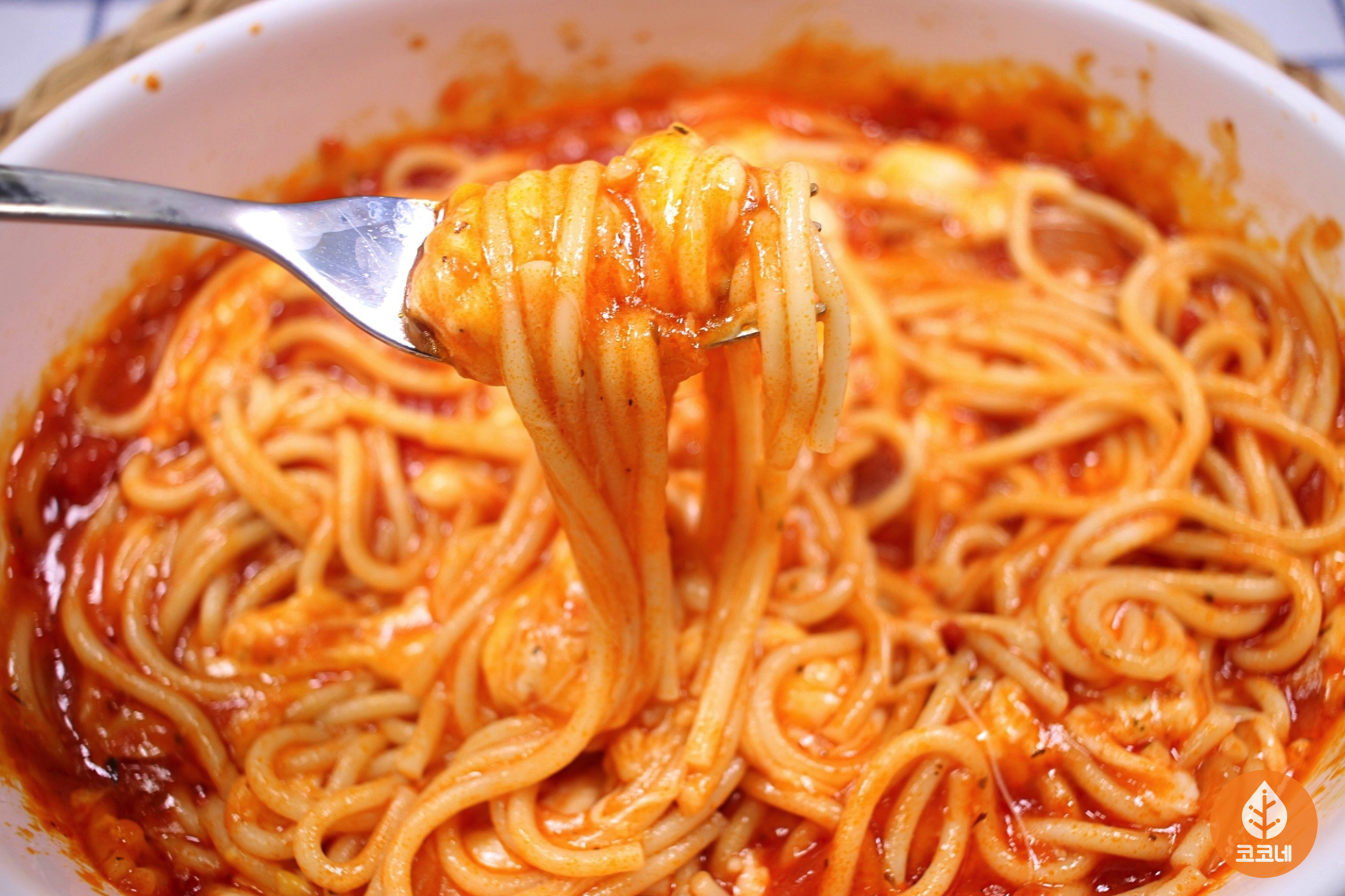 전자레인지 스파게티가 완성됐어요.
