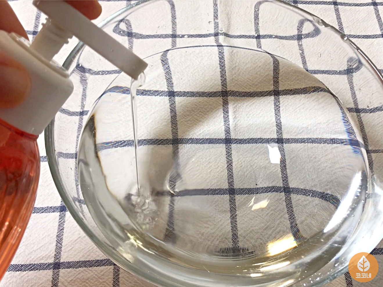 찬물에 중성세제 한두방울 풀고