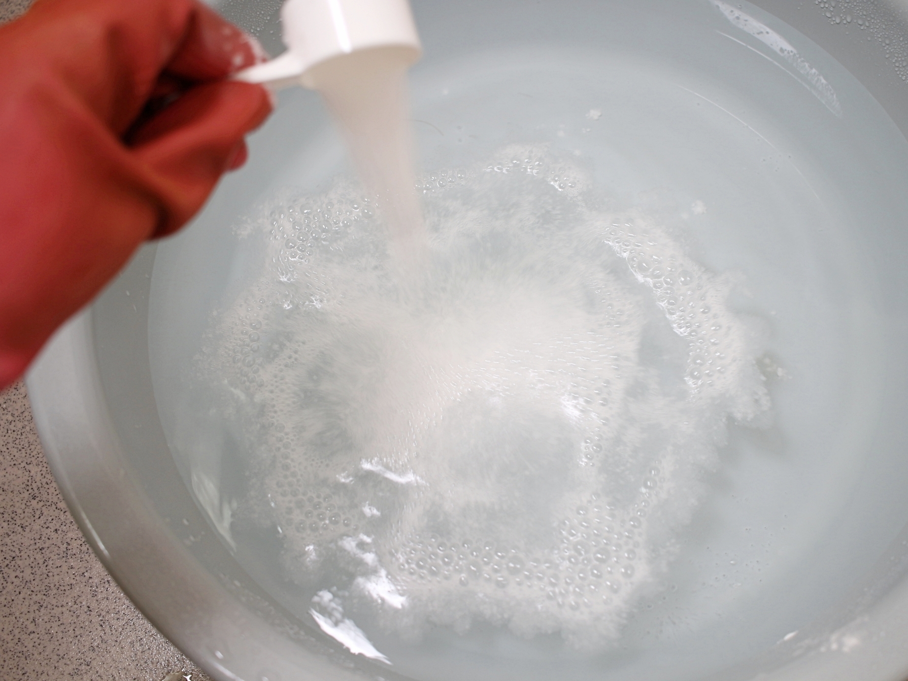 찬물에 베이킹소다를 섞어 물통을 닦아주면