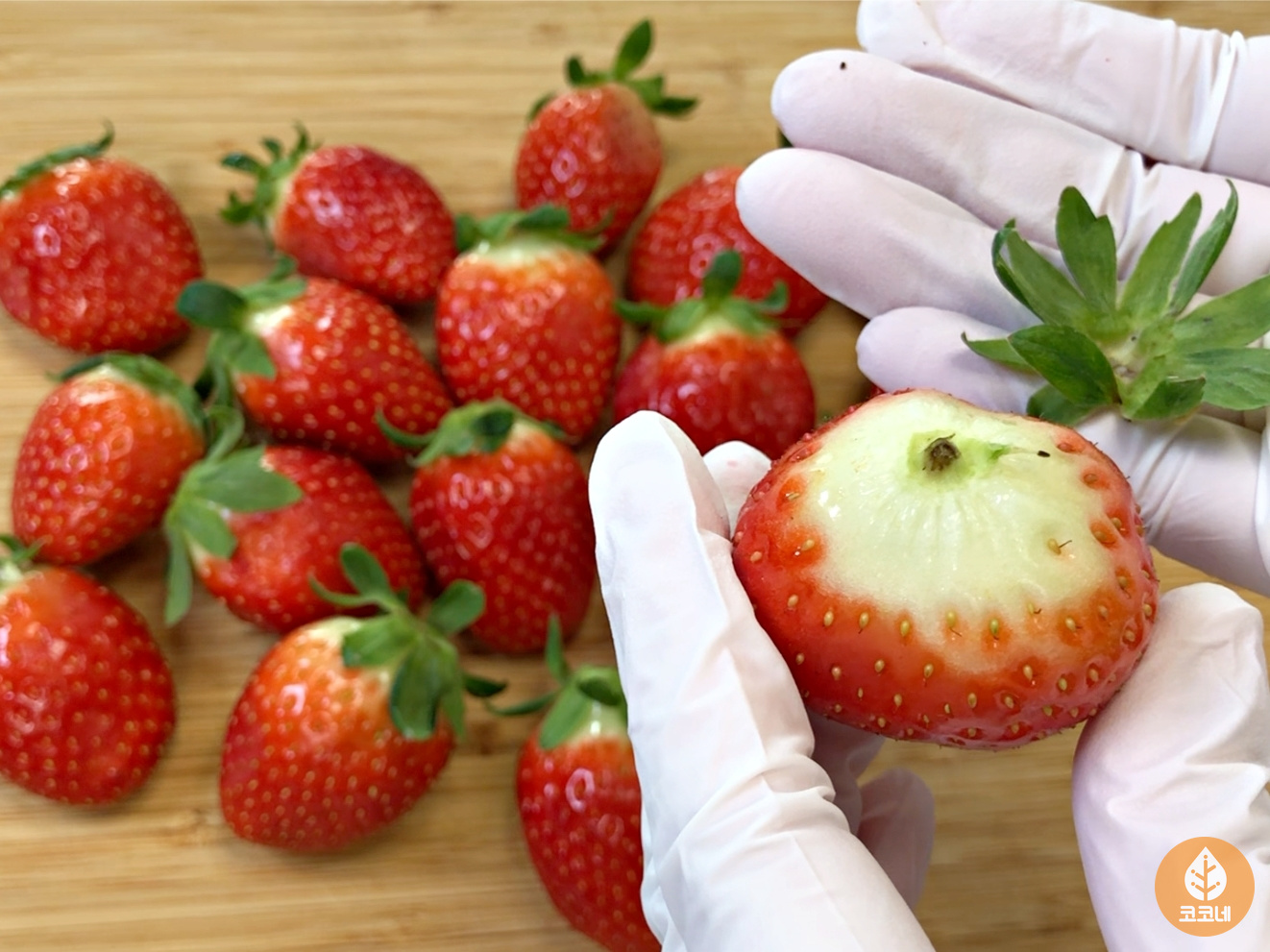 딸기 꼭지에는 생각보다 많은 이물질이나
