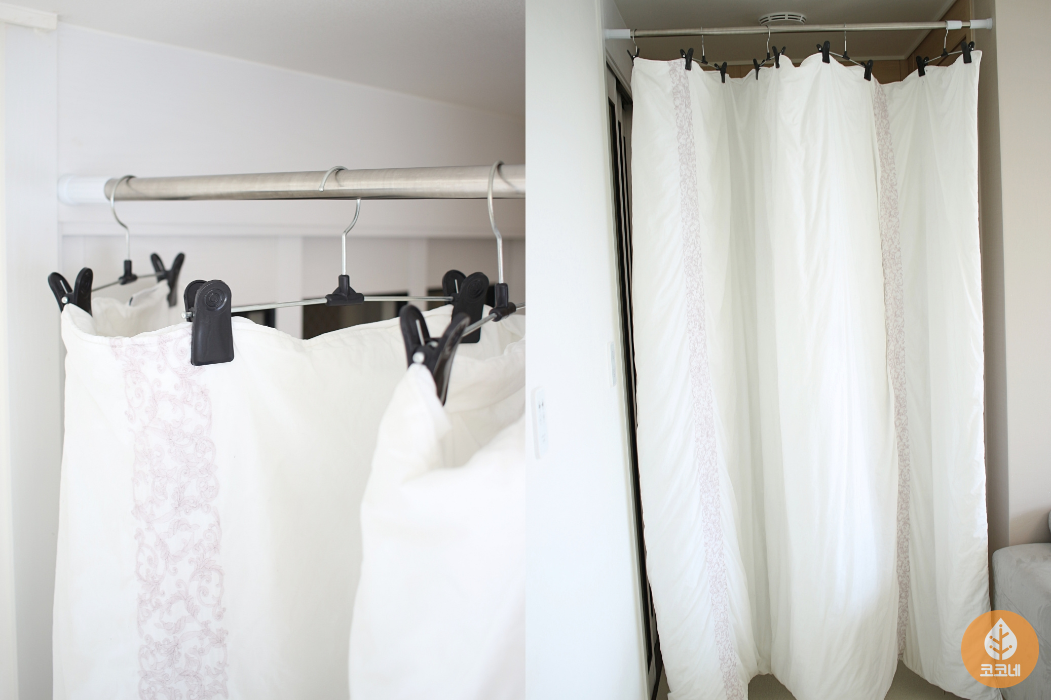 좁은 공간에서 건조대 없이도 이불빨래 뽀송하게 말리는 방법
