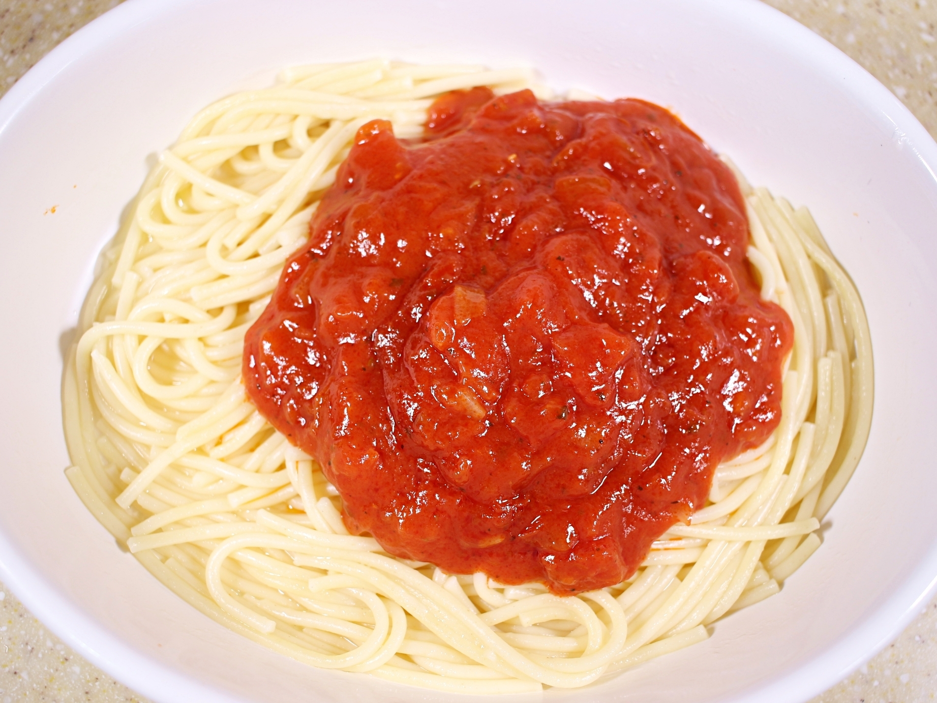재료는 스파게티면과 소스, 모짜렐라치즈,