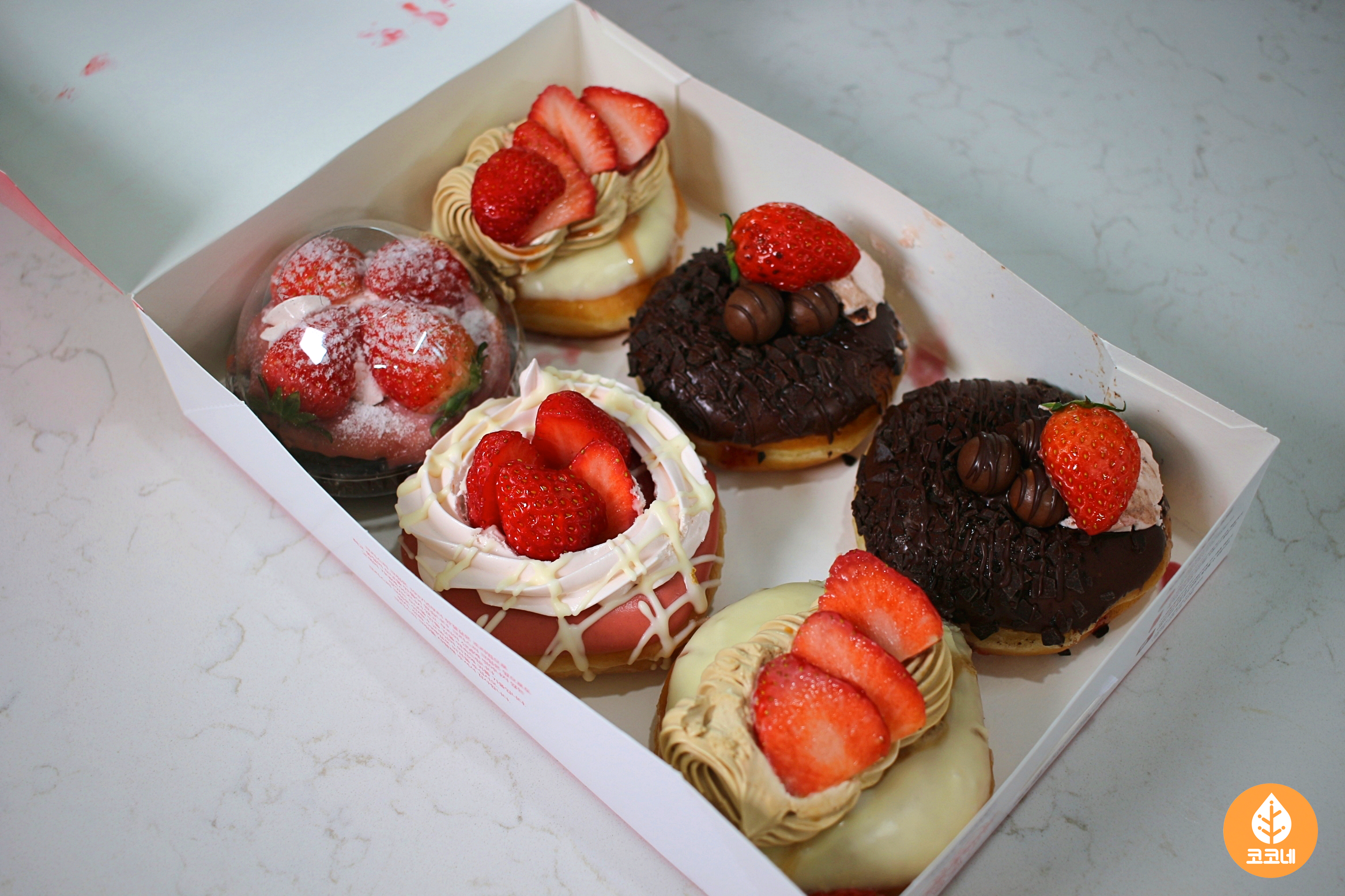 딸기 시즌 도넛 6개와