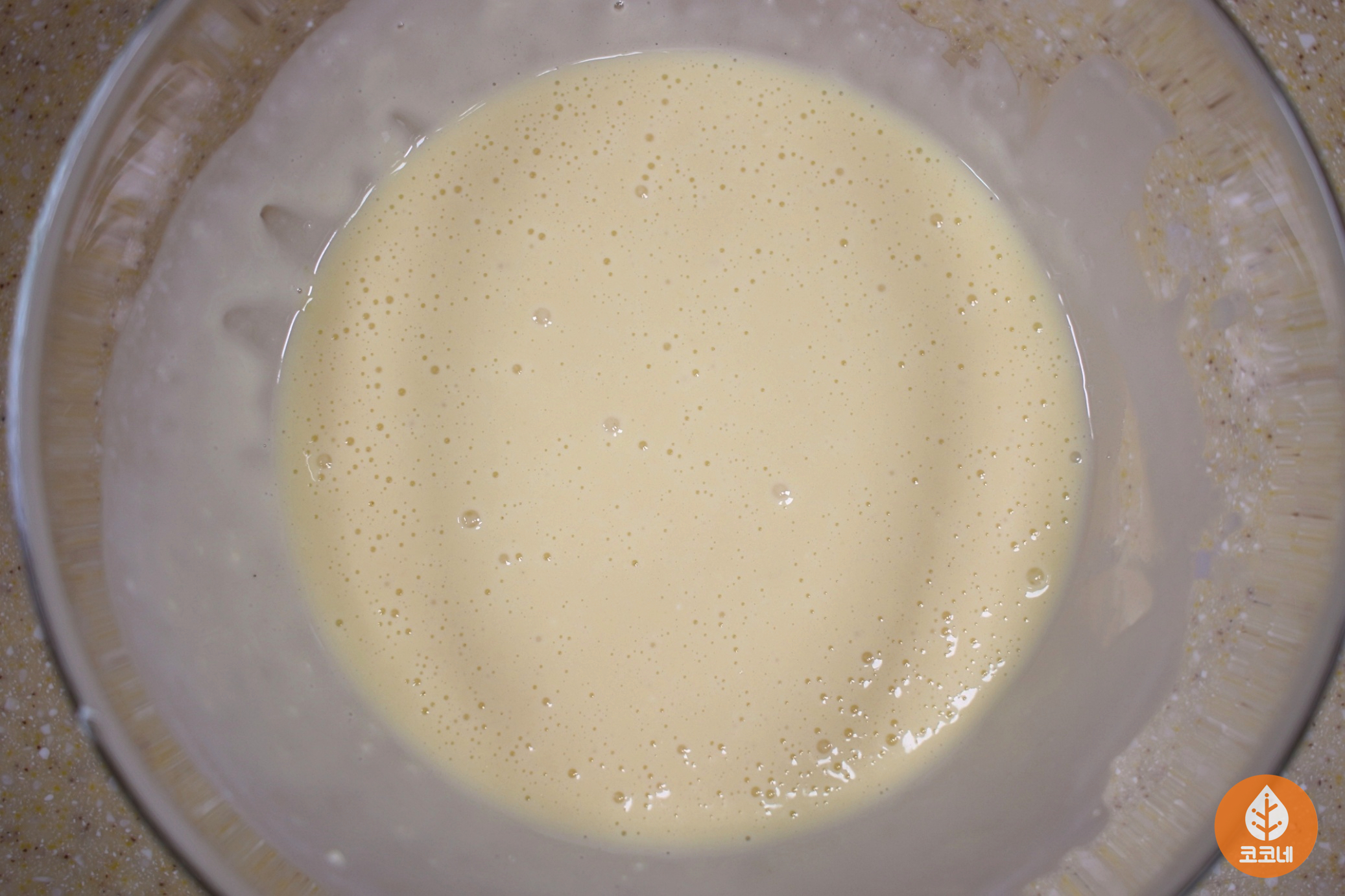 달걀, 핫케이크가루, 우유, 꿀을 골고루 섞어주면