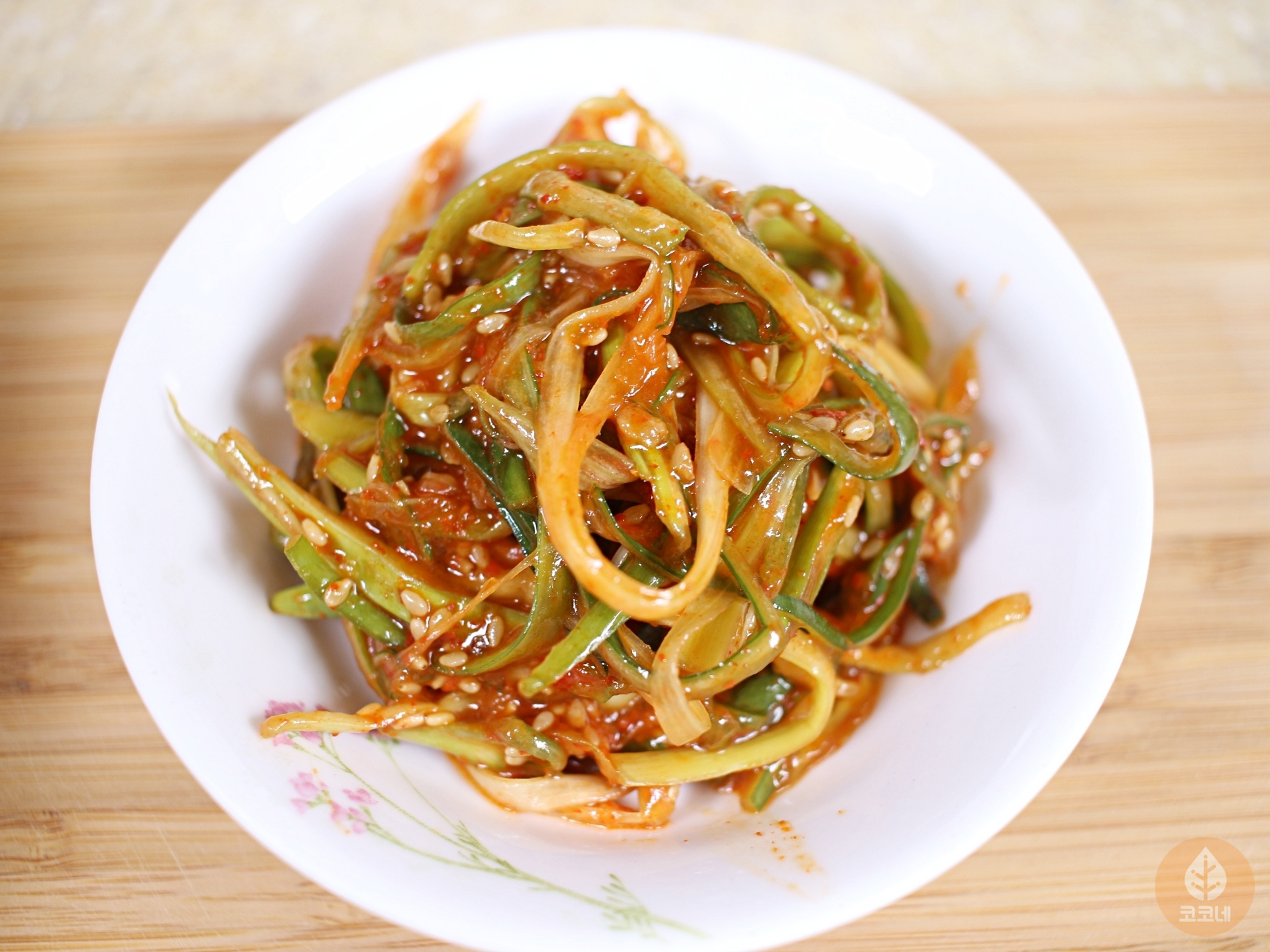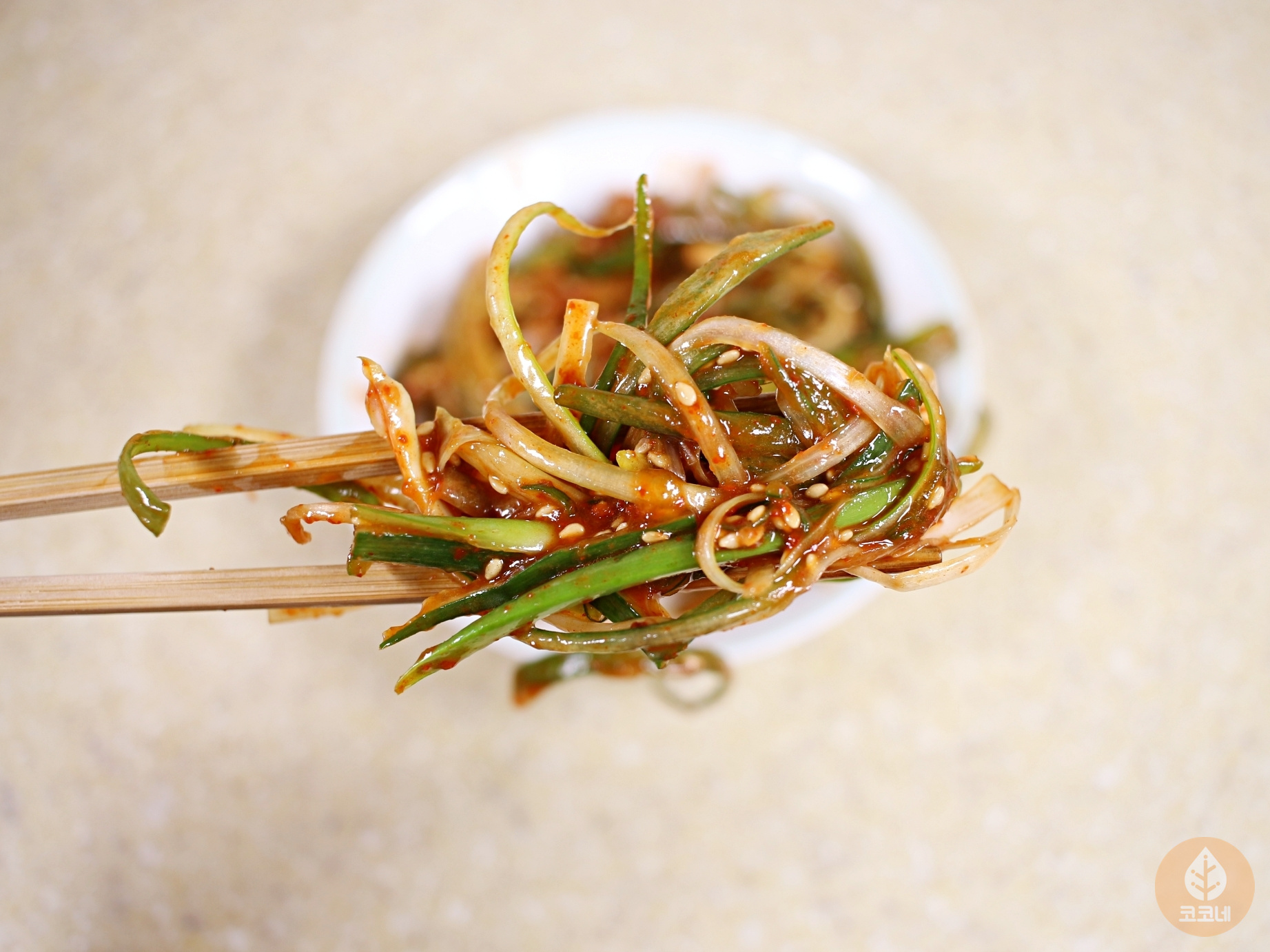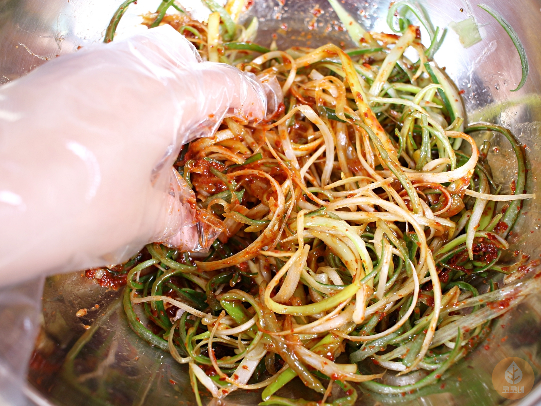 참기름 휘휘 둘러서 무친 파무침이에요.
