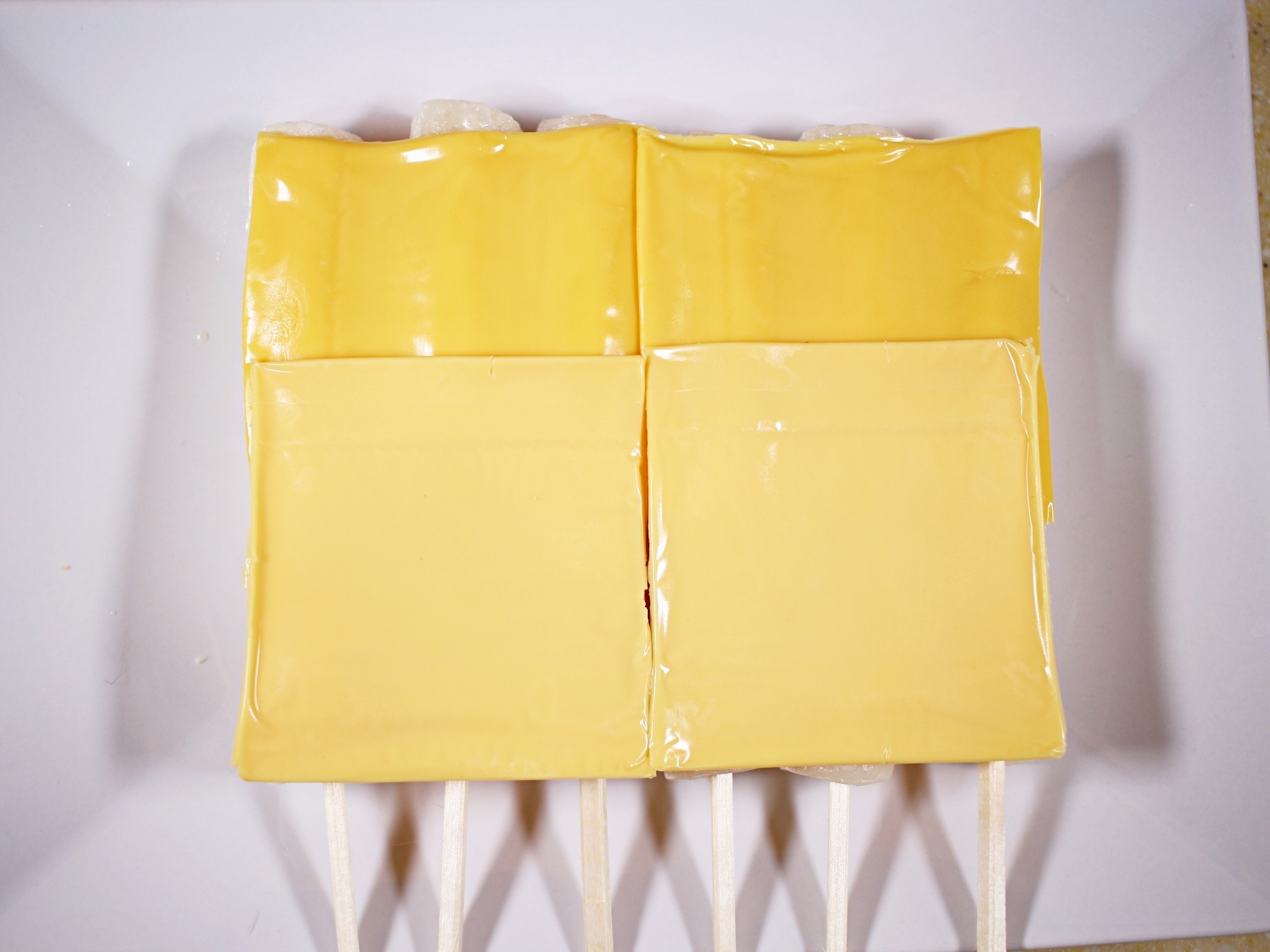 슬라이스치즈로 빈틈없이 덮어요.